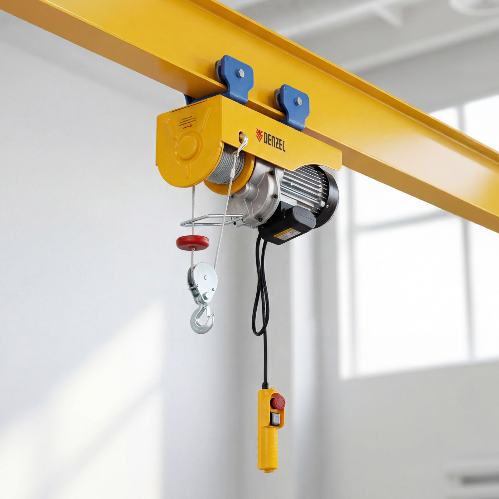 Тельфер электрический TF-1200,1.2 т, 1800 Вт, высота 12 м, 8 м/мин Denzel