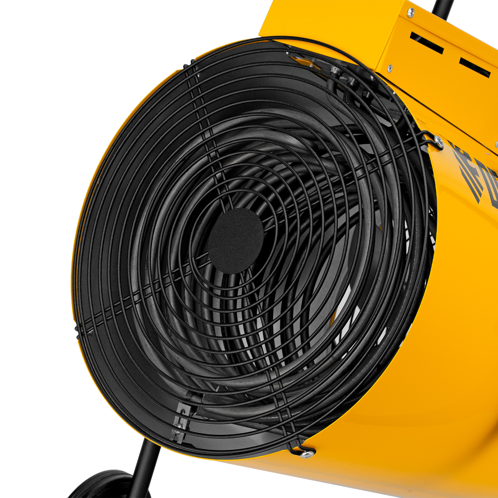 - 3 режима работы — вентиляция (без обогрева), обогрев на мощности 9000 Вт и обогрев на мощности 15000 Вт — позволяют настроить работу тепловой пушки под разные задачи.