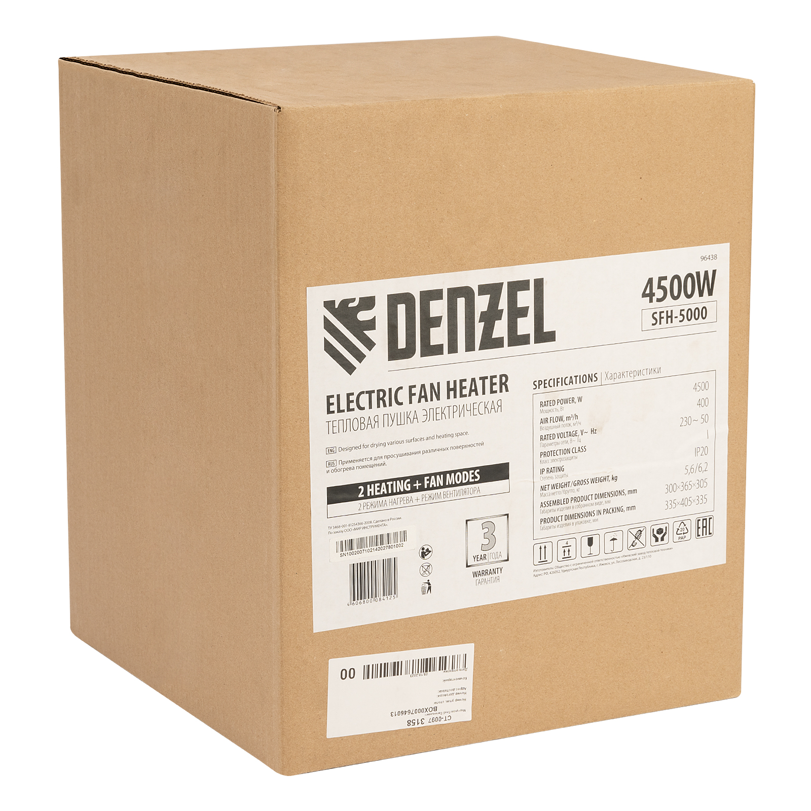 Тепловая пушка SFH-5000, 230 В, 260 м3/ч, вентилятор 3 режима, 3000/4500 Вт Denzel в Казани