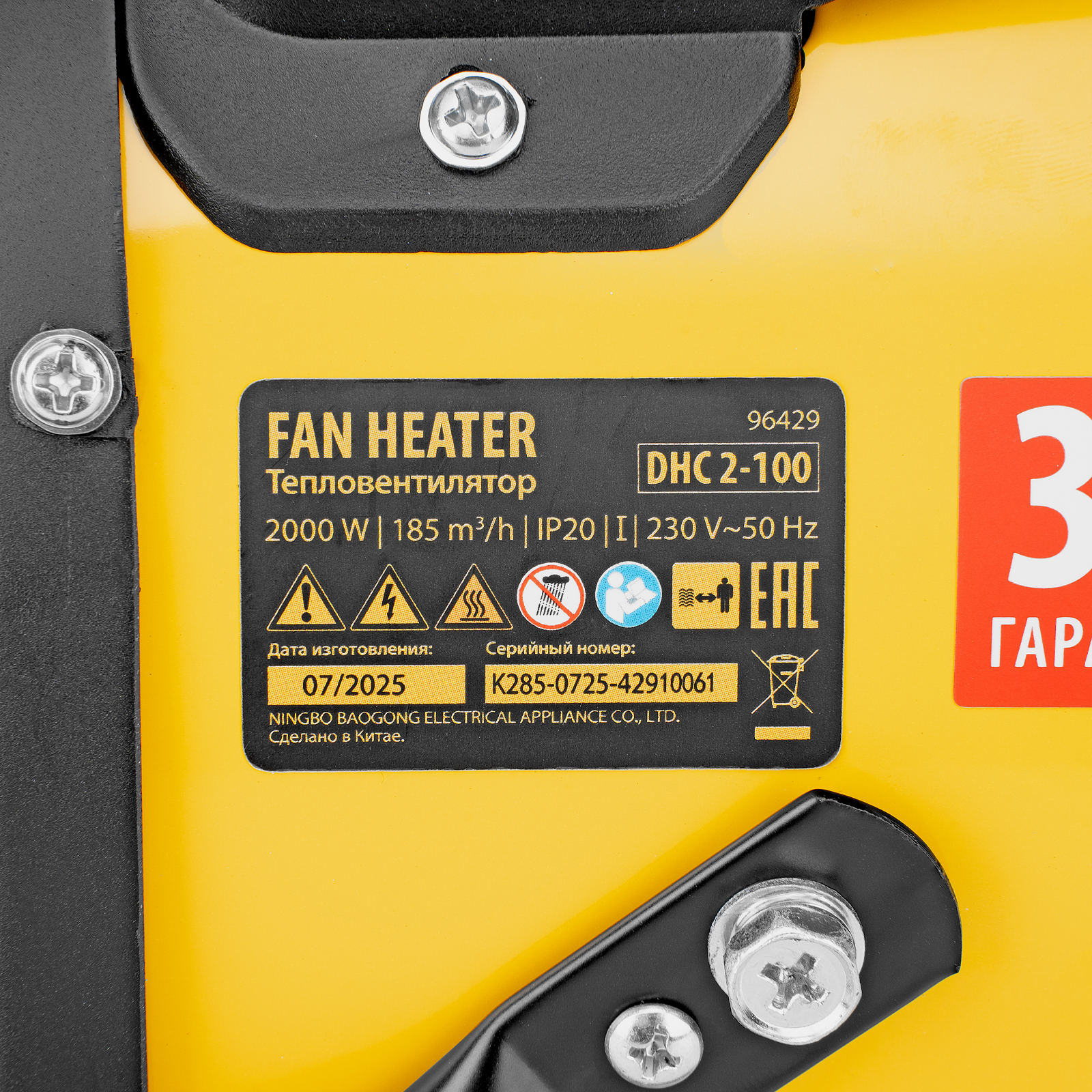 - Гарантия 3 года — высокое качество тепловой пушки подтверждено производителем.
