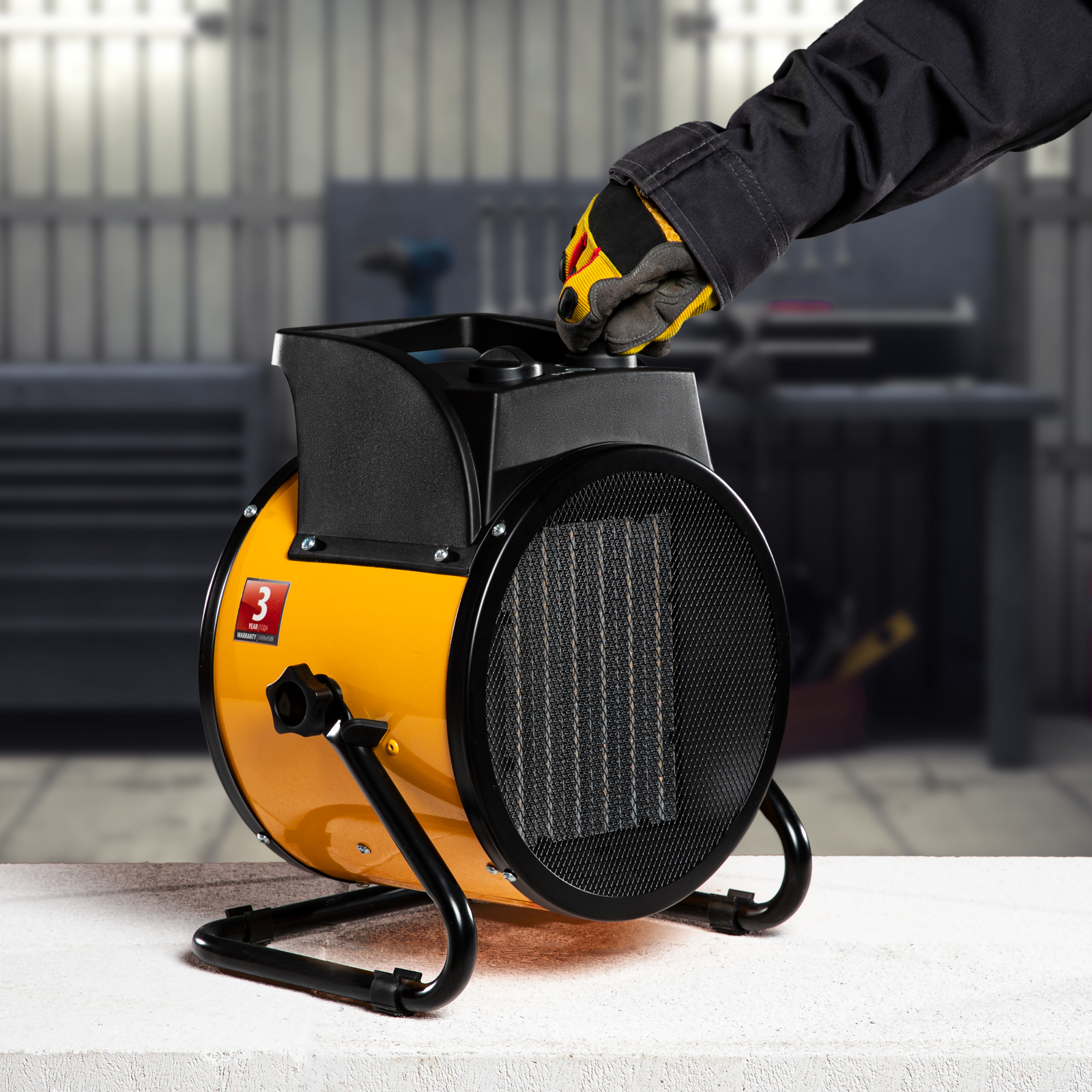 - Устойчивая конструкция — широкая опора с 4 ножками исключает опрокидывание тепловентилятора.