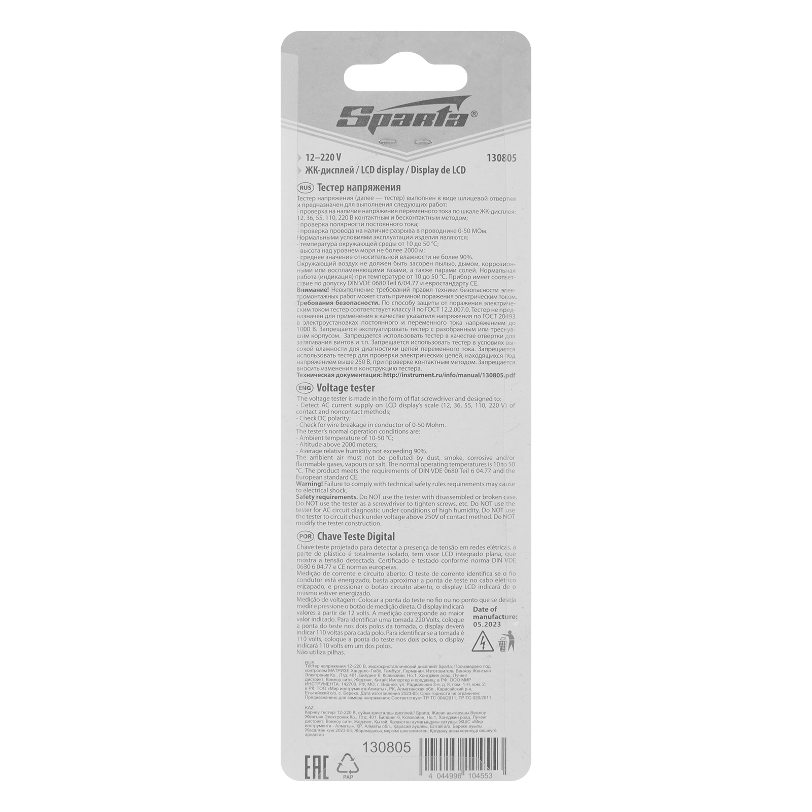 Тестер напряжения 12-220 В, жидкокристаллический дисплей Sparta в Казани