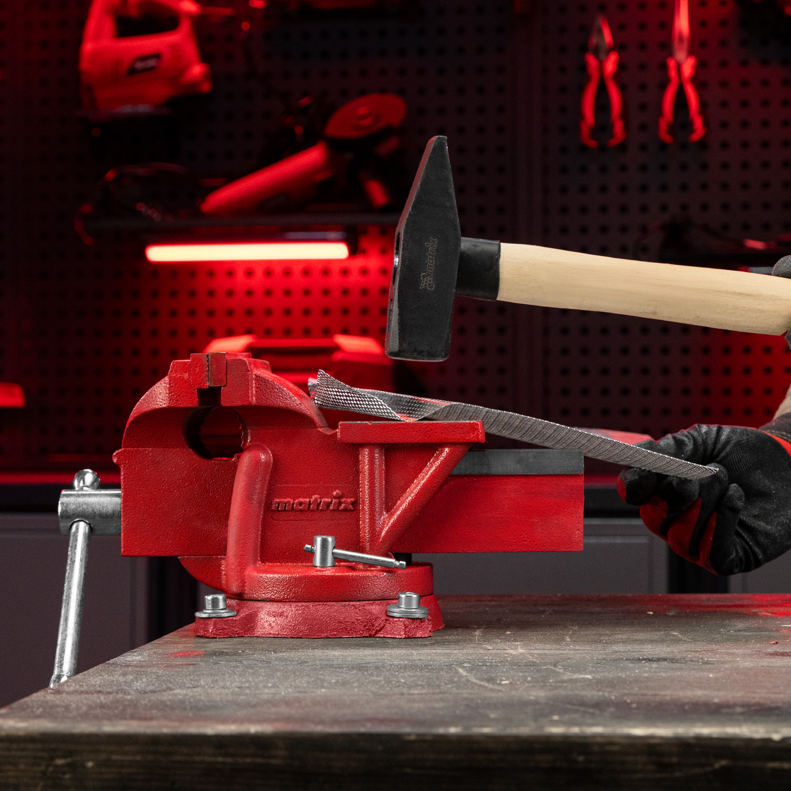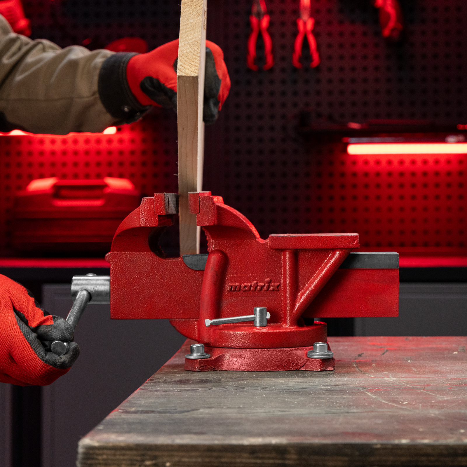 Поворотные слесарные тиски Matrix 18601 с наковальней и губками шириной 125 мм имеют рабочий ход 115 мм и предназначены для захвата и фиксации различных деталей. Поворотный механизм с прижимными винтами позволяет вращать тиски на 360° и фиксировать их в выбранном положении для удобной обработки заготовок с разных сторон. Инструмент используется для шлифовки, сверления и проведения других работ. Будет полезен в мастерской и гараже.