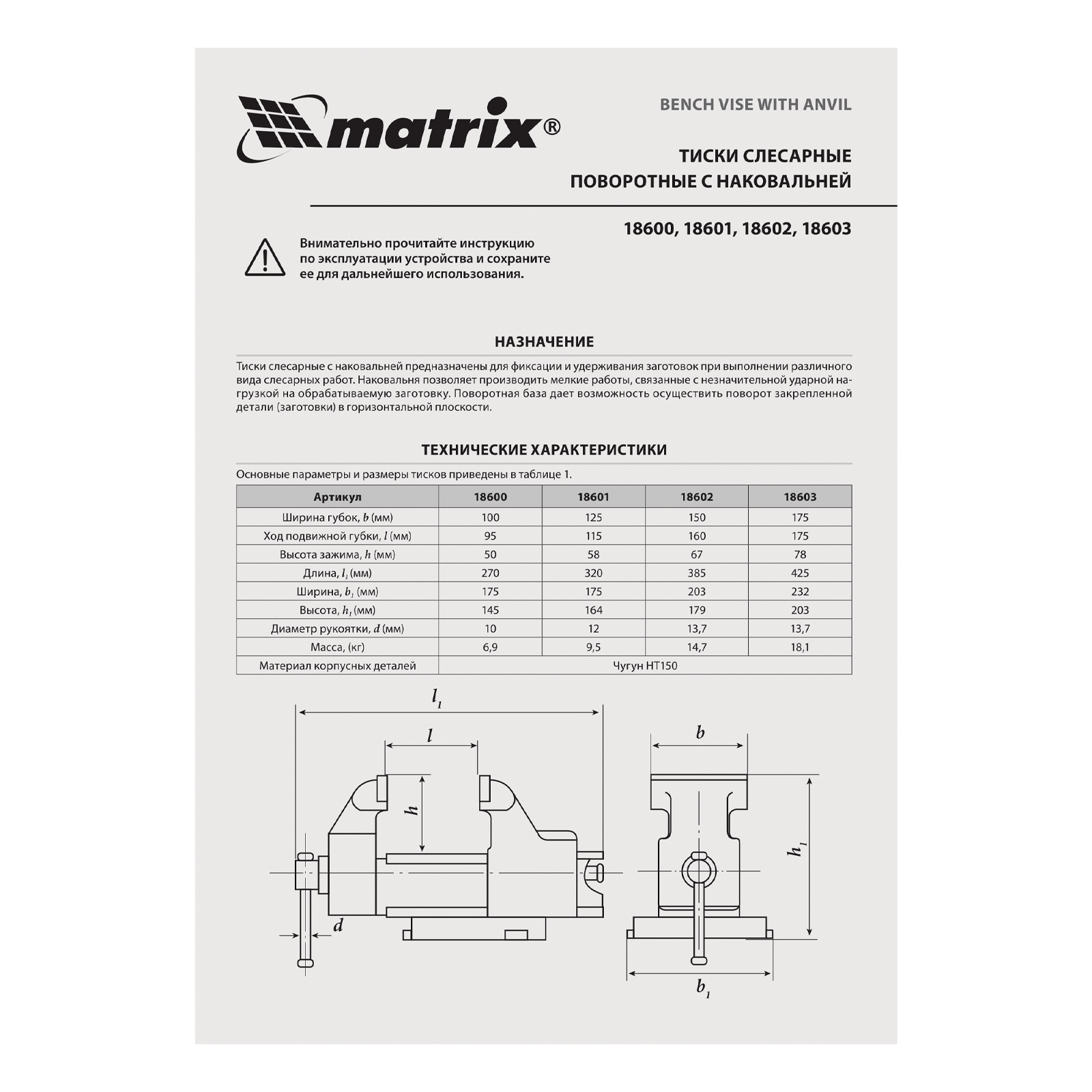 Тиски слесарные, 125 мм, поворотные, с наковальней Matrix