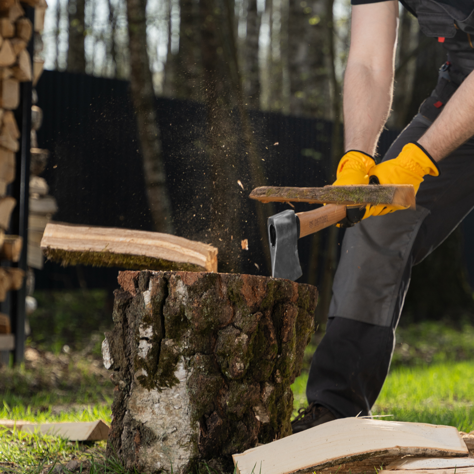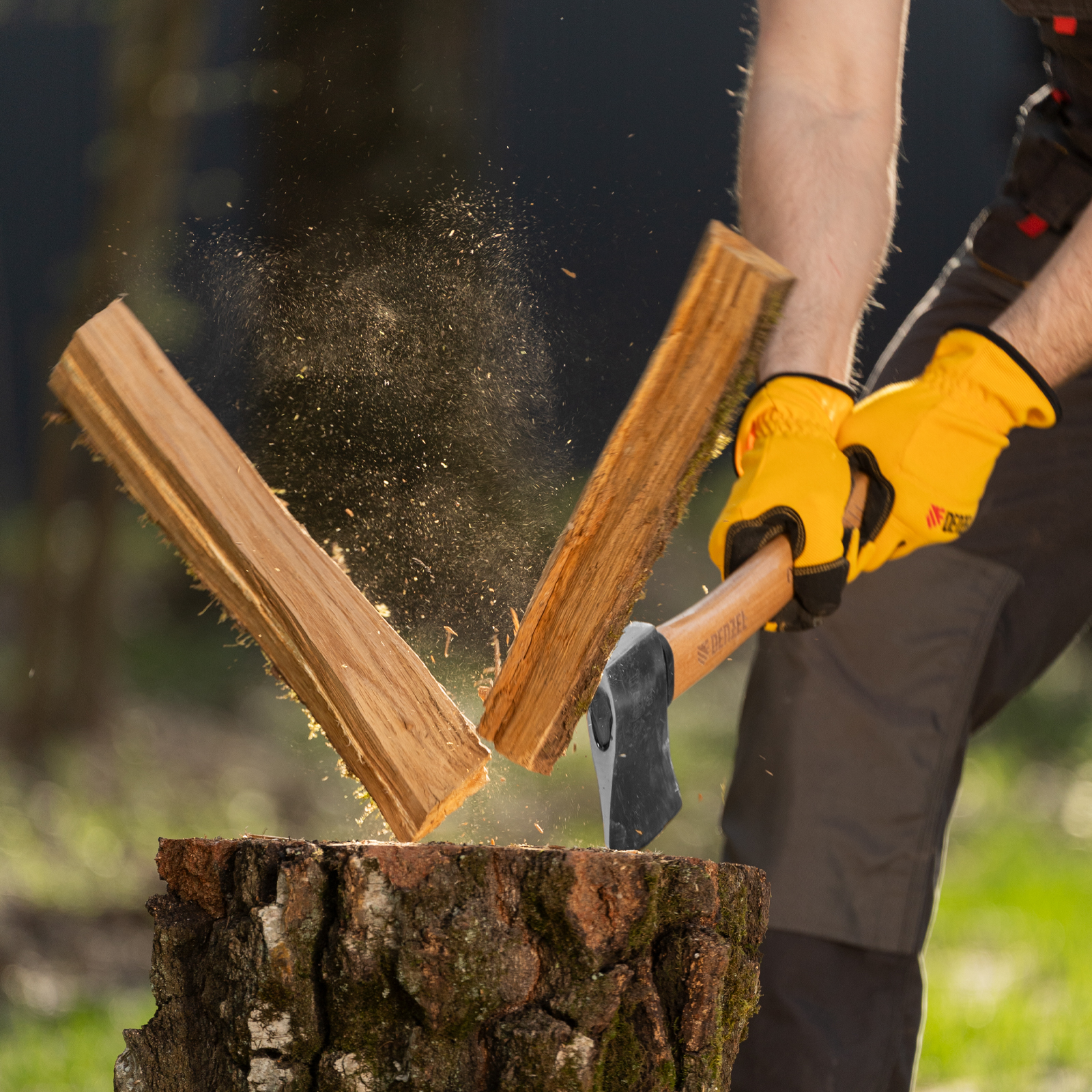 - Прочность — топорище изготовлено из твердой древесины бука и покрыто защитным лаком для предотвращения рассыхания и разбухания.