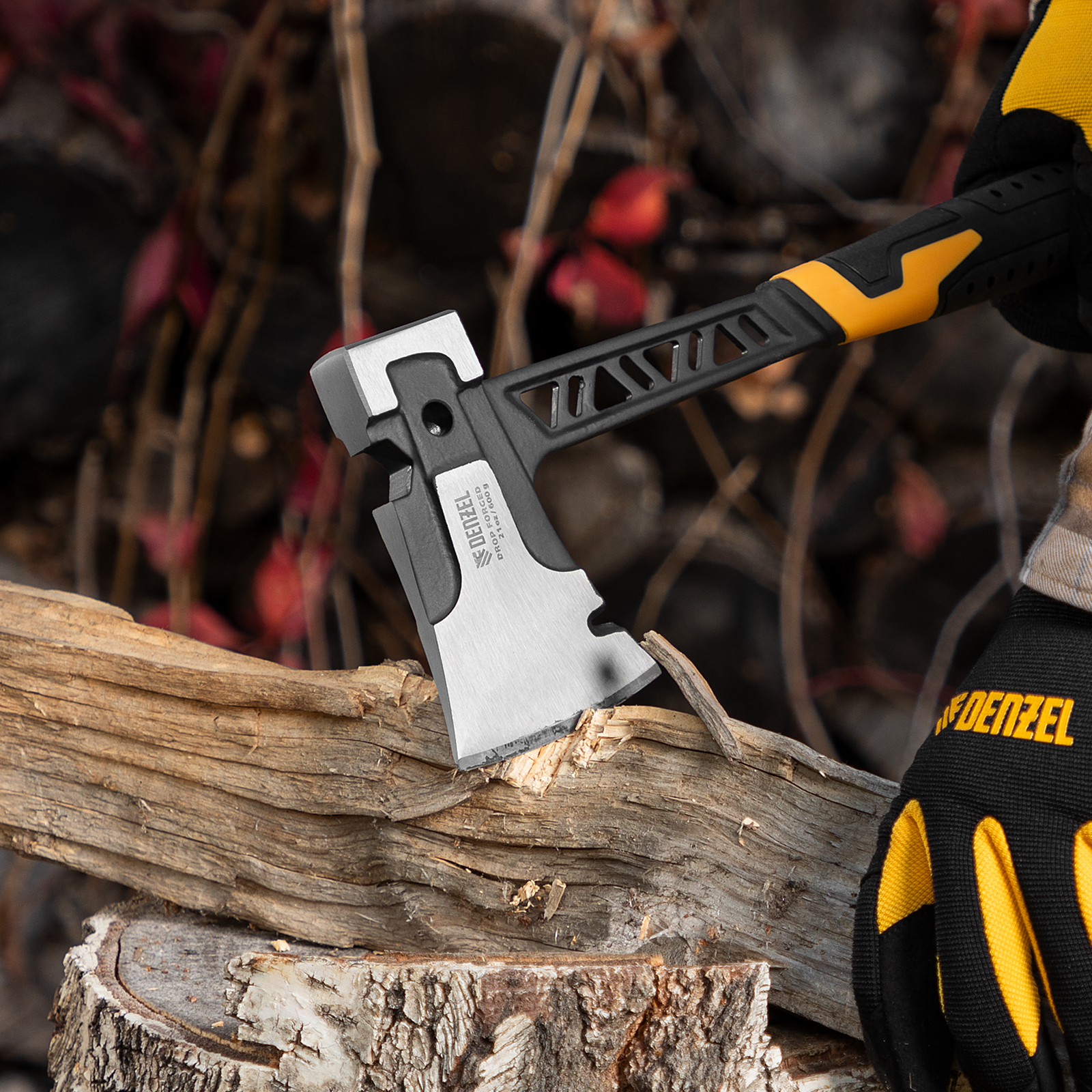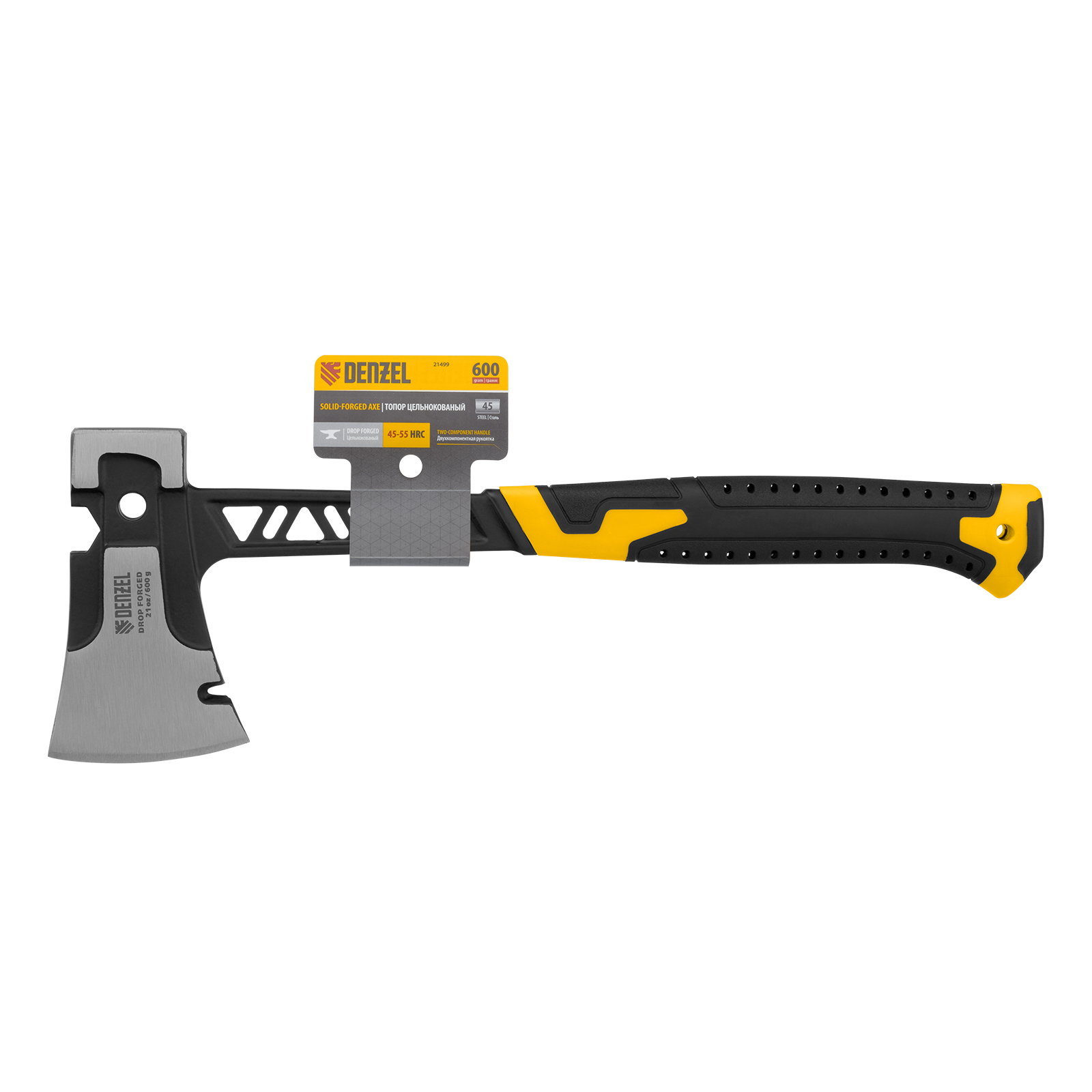 Топор цельнокованый 600 г, двухкомпонентная обрезиненная рукоятка Denzel