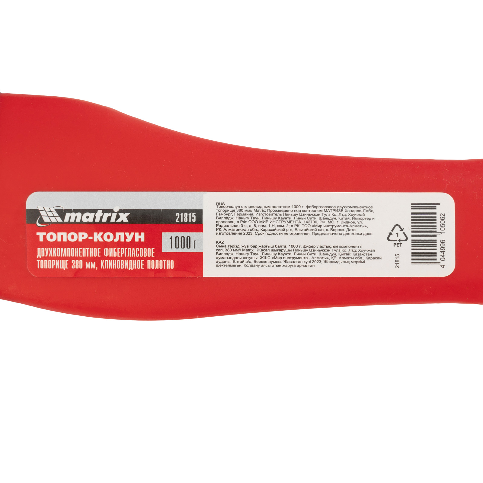 Топор-колун с клиновидным полотном 1000 г, фибергласовое двухкомпонентное топорище 380 мм Matrix в Казани