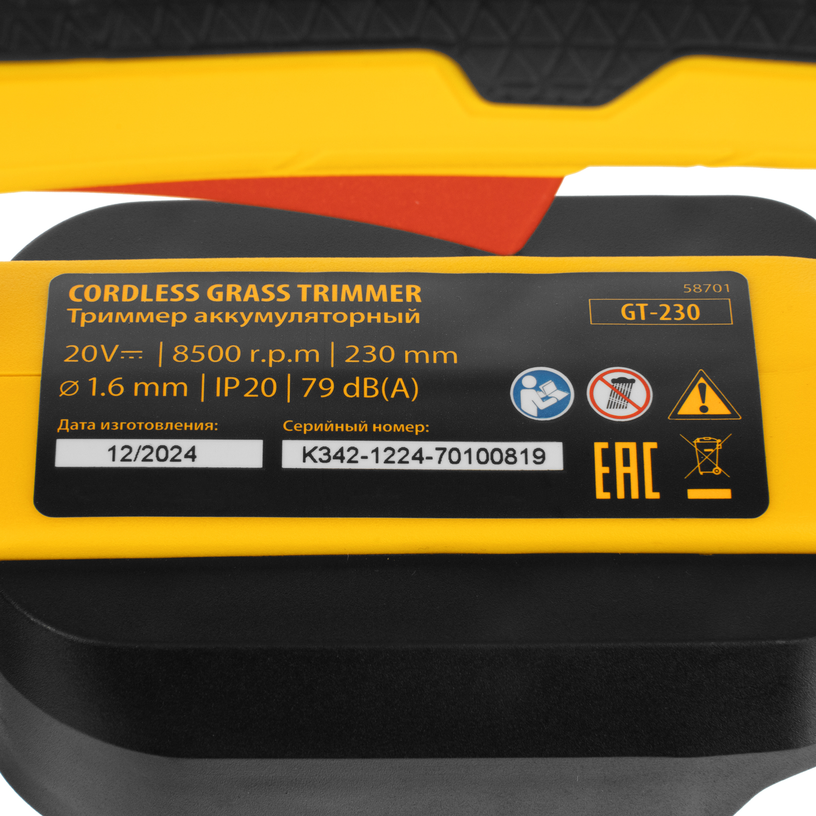 Триммер аккумуляторный GT-230, 230 мм, Li-Ion, 20 В Denzel в Казани