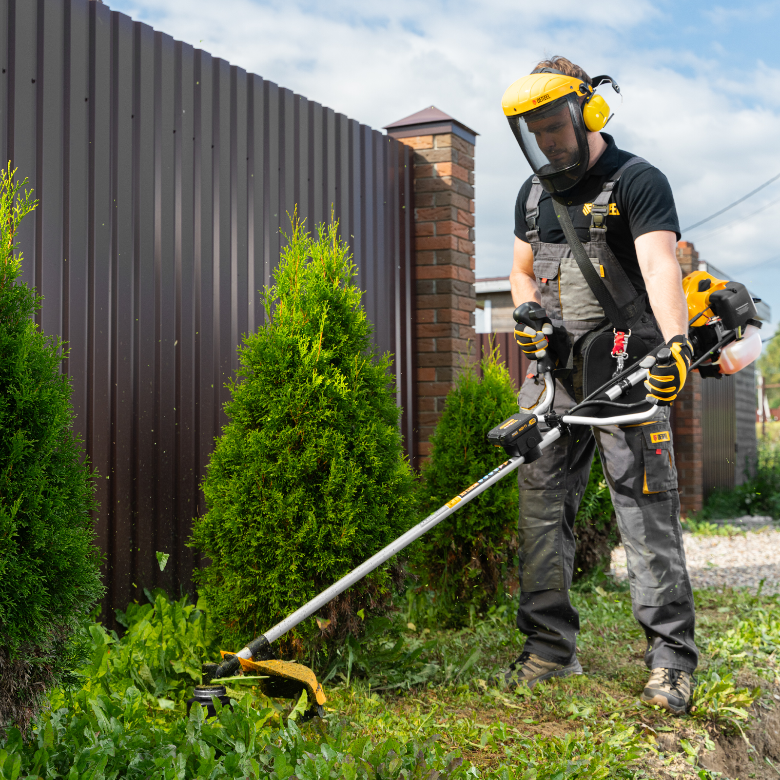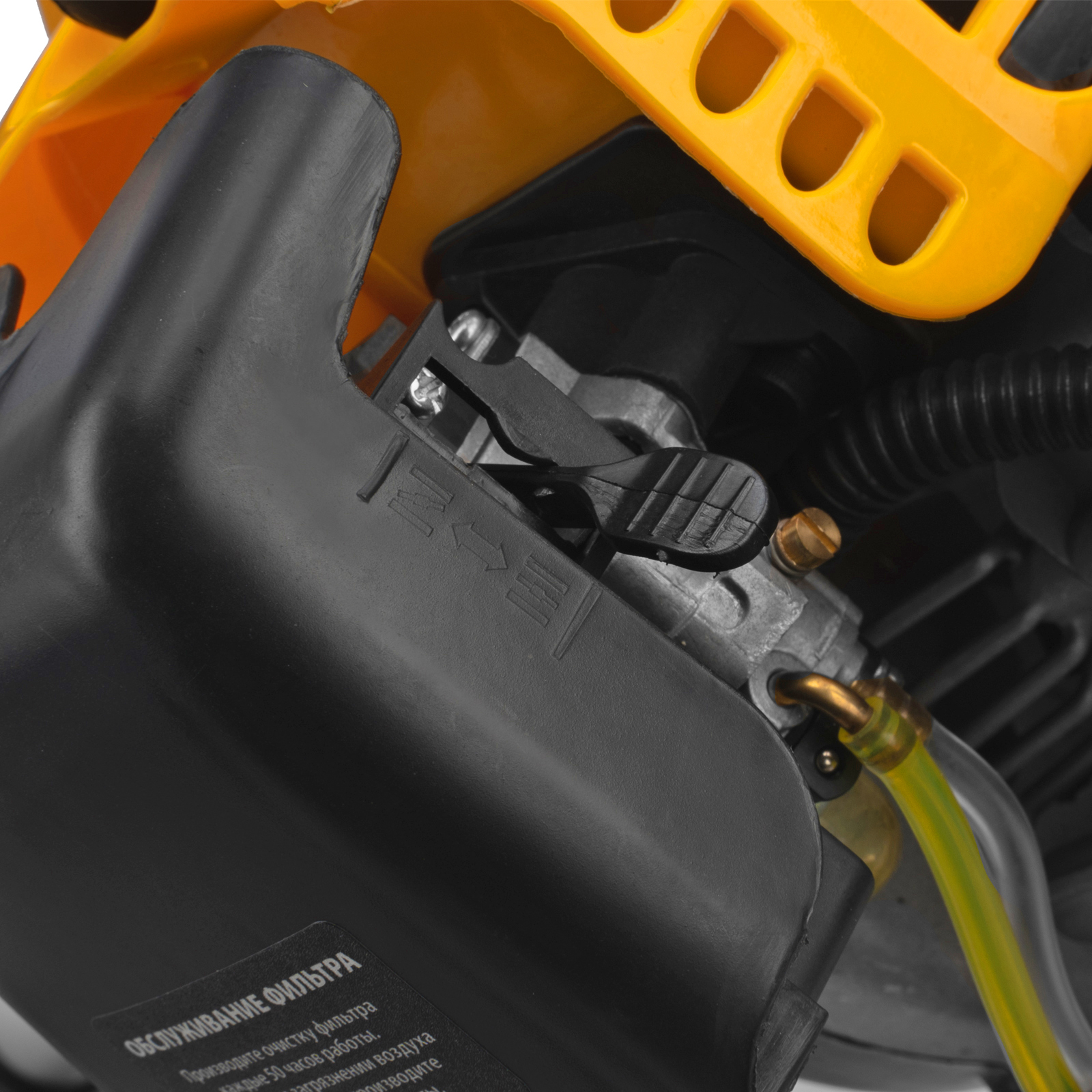 - Автоматическая подрезка лески — нож на кожухе укорачивает концы корда до нужной длины, что предотвращает перегрузку двигателя.