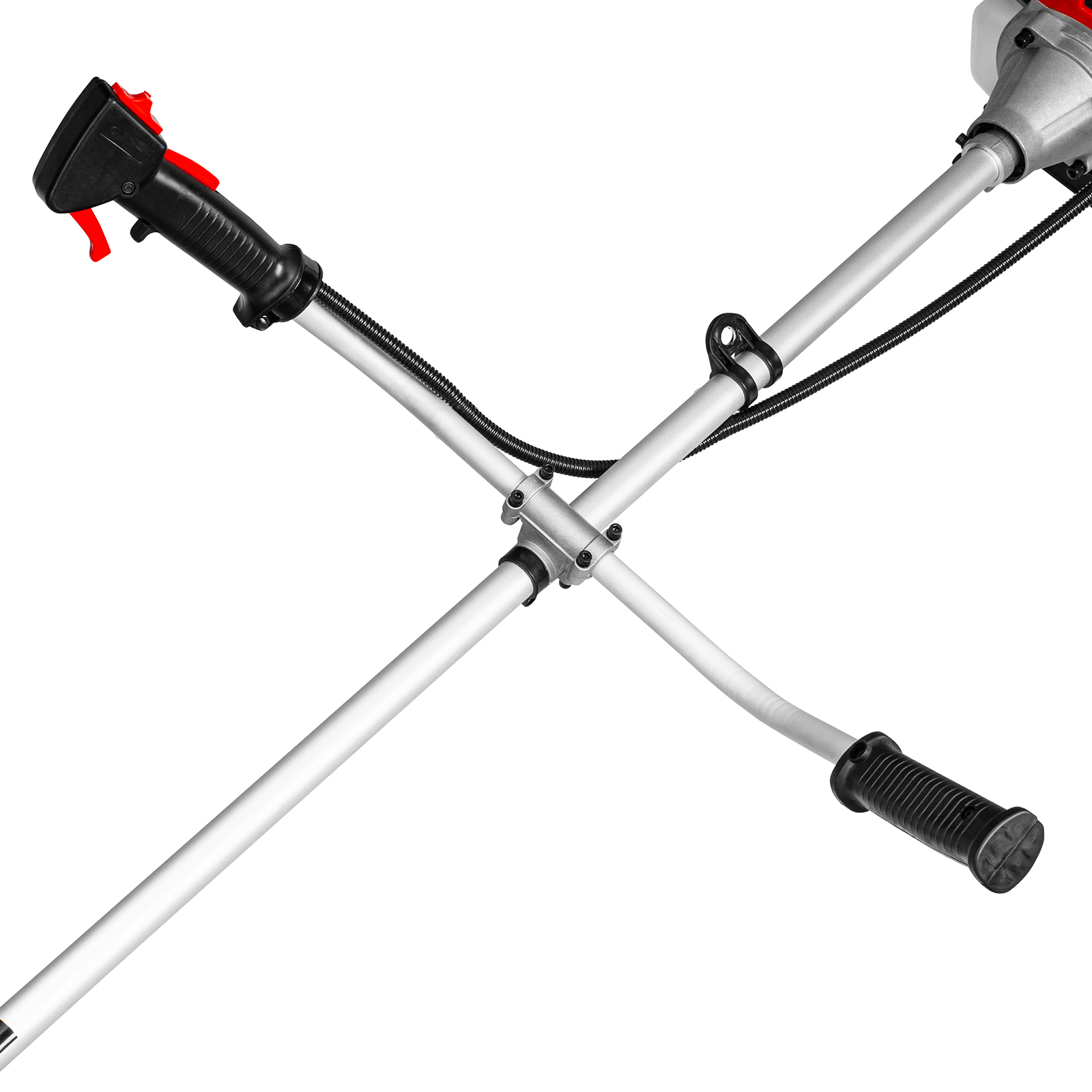 - Комфортная работа — благодаря плечевому ремню и рукояткам велосипедного типа триммер удобно удерживать и направлять.