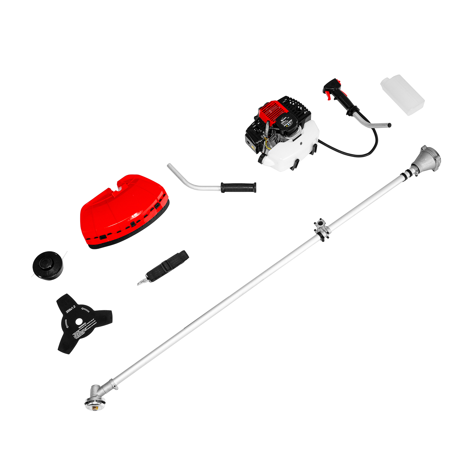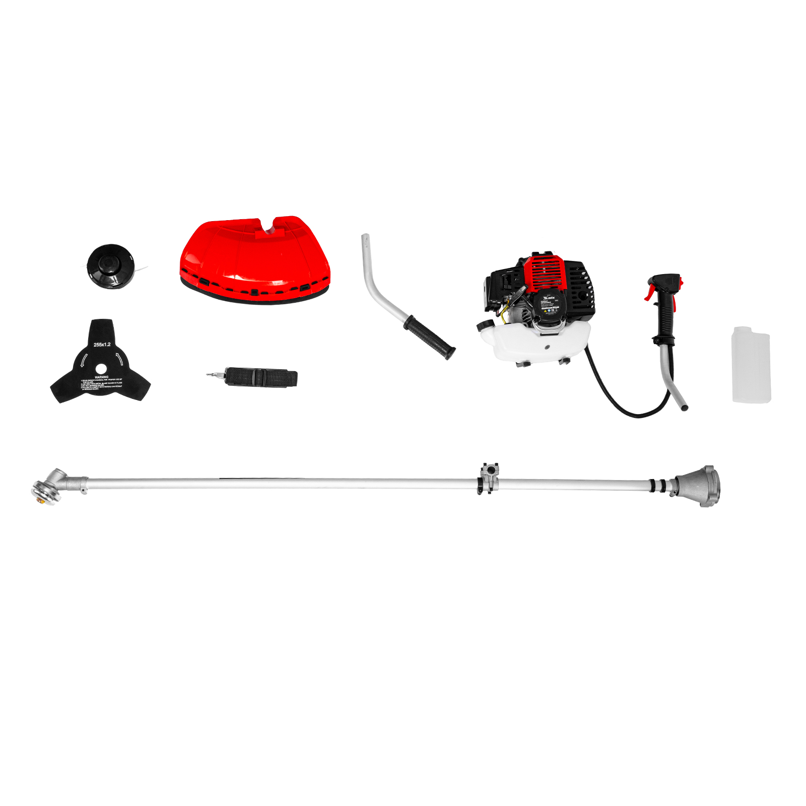 Двигатель с правой рукояткой - 1 шт, левая рукоятка - 1 штШтанга - 1 штЗащитный кожух с ножом - 1 шт, кронштейн защитного кожуха - 1 штКатушка с леской - 1 шт, нож трехлопастной - 1 штДозатор для приготовления смеси - 1 штРемень плечевой - 1 штКорпус сцепления с крепежом - 1 штРедуктор с винтами - 1 штУзел крепления рукояток с крепежом - 1 шт, узел подвеса ремня - 1 штСвечной ключ - 1 шт, имбусовый ключ Н5 - 1 шт, имбусовый ключ Н6 - 1 штБолт M6×20 - 4 шт, болт M5×15 - 2 шт, гайка M5 - 2 шт, хомут - 2 штРуководство по эксплуатации с гарантийным талоном - 1 шт |