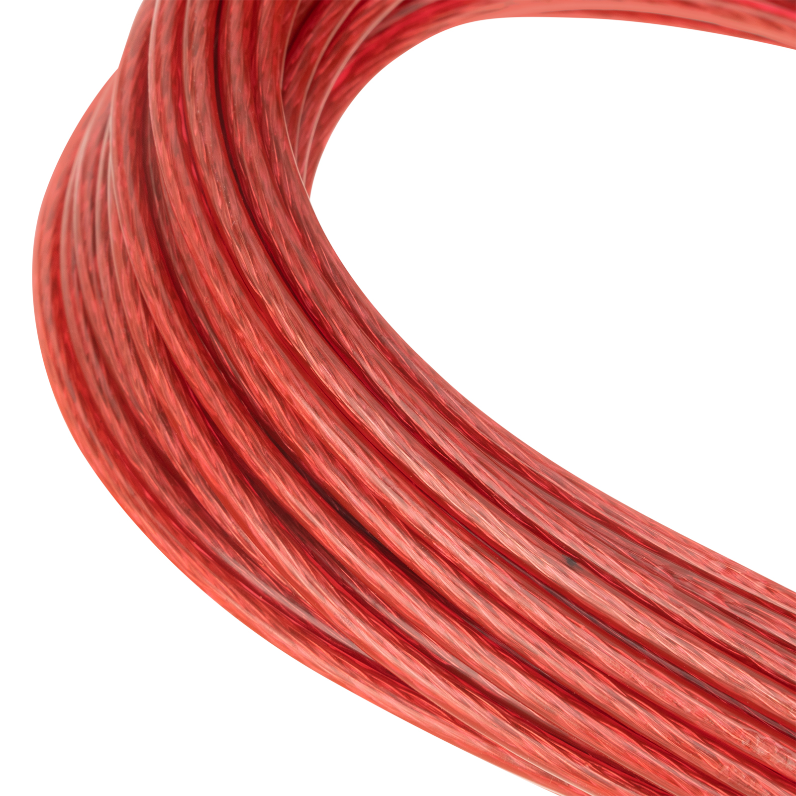 - Возможность использования в декоративных целях — оболочка троса выкрашена в красный цвет.