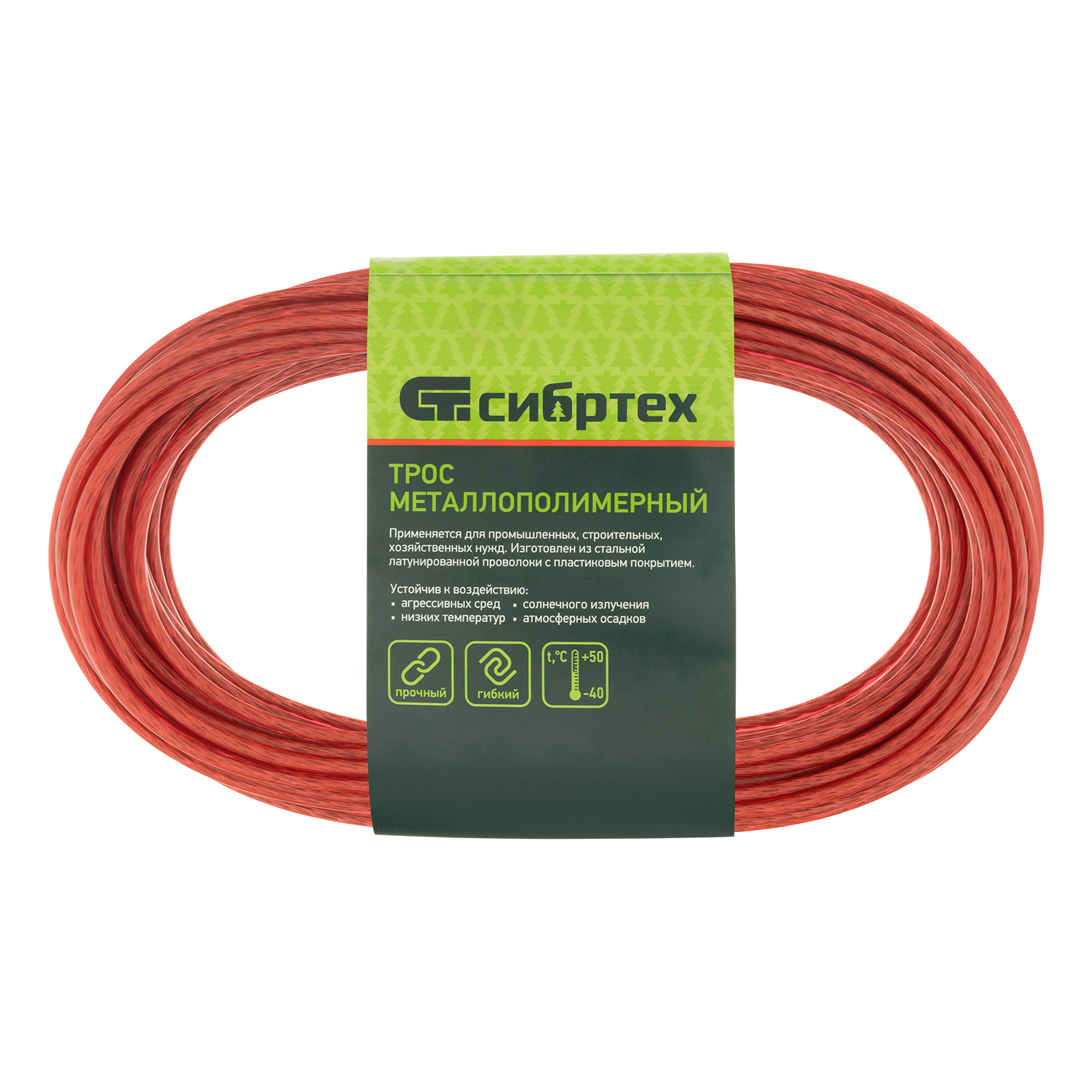 Металлополимерный трос ПР-3.0 Сибртех 47644 красного цвета, толщиной 3 мм, в мотке 20 метров, используется для монтажа баннеров и рекламных растяжек, погружения скважинных насосов и датчиков, установки тентов и теплиц, а также в качестве пломбировочного троса. Может выполнять функцию садового шнура для подвязки растений, устройства ограждений, а также применяться в качестве троса для развешивания белья. Благодаря покрытию из пластиката ПВХ-трос устойчив к истиранию, коррозии, УФ-излучению и перепадам температуры, что увеличивает срок его службы.