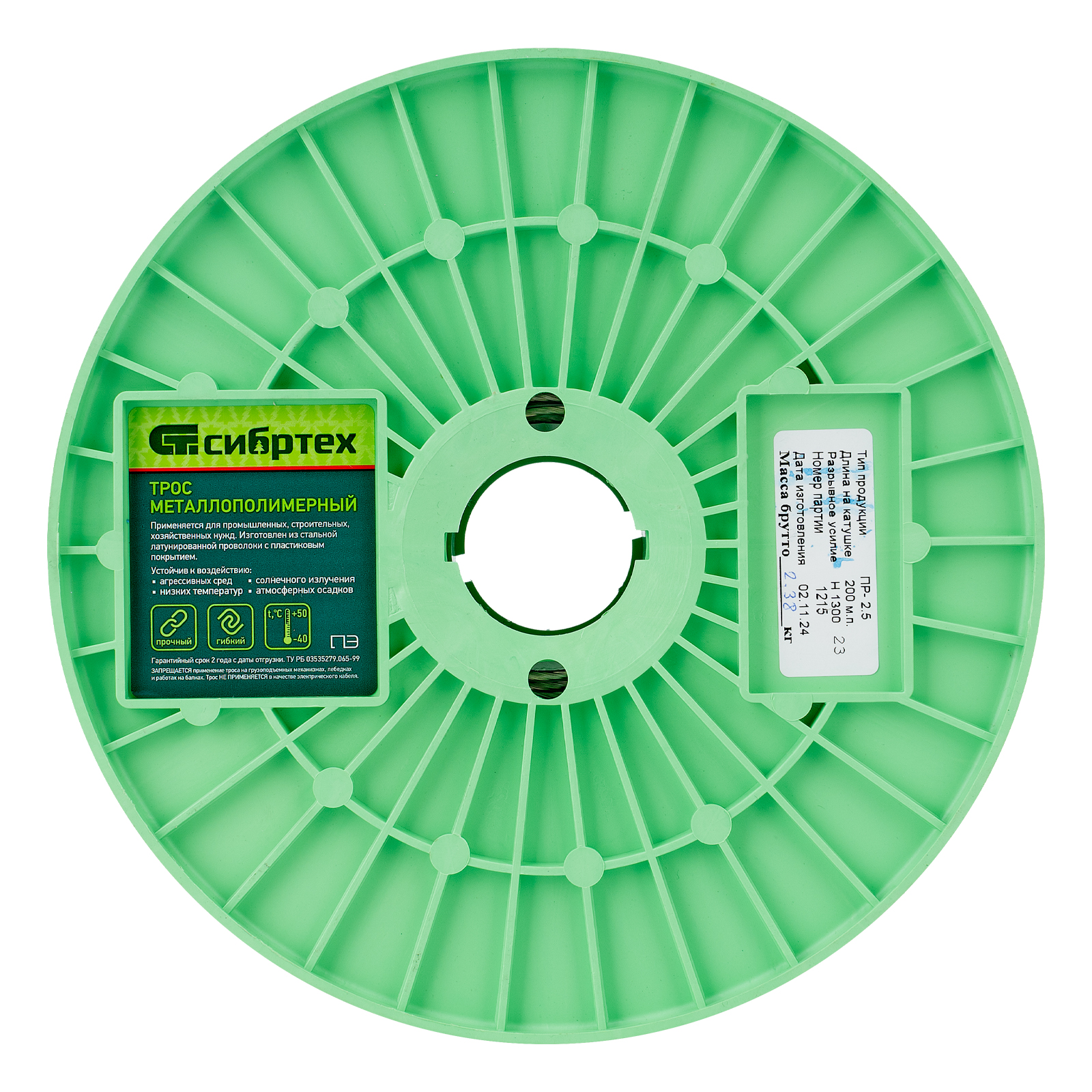 Металлополимерный прозрачный трос ПР-2.5 Сибртех 47626 толщиной 2,5 мм, 200 м. п. на катушке, используется для монтажа рекламных баннеров, установки ограждений, палаток, теплиц, погружения скважинных насосов и датчиков. Применяется в качестве садового троса-шнура для подвязки растений, а также может служить для развешивания белья. Жила шнура изготовлена из стальной проволоки, поэтому он выдерживает значительные нагрузки.
