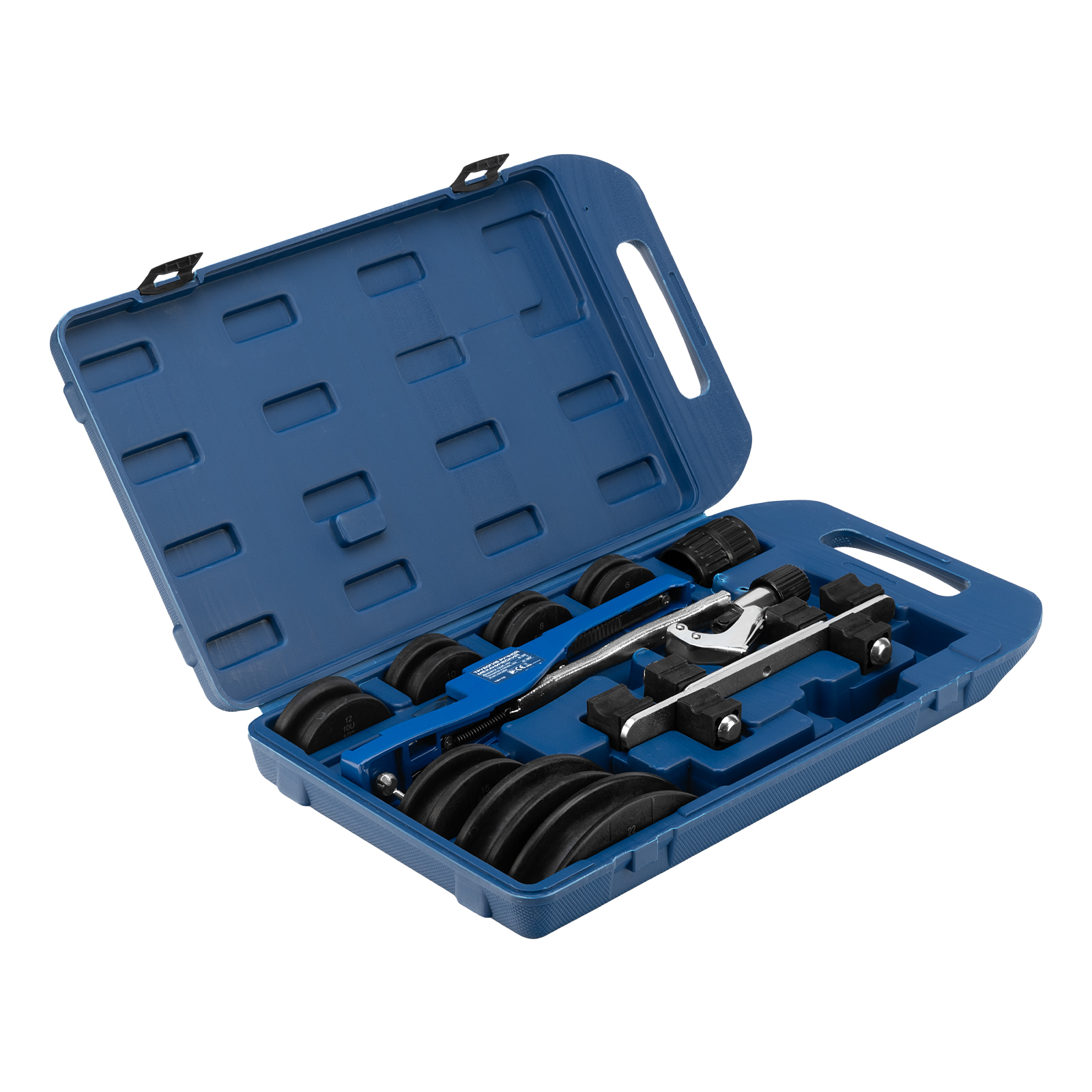 Ручной механический трубогиб Stels 18110 с башмаками 1/4"–7/8", в пластиковом кейсе, используется для установки любых типов трубопроводов. Обеспечивает точный и плавный изгиб отожженных труб из меди с покрытием и без, а также комбинированных металлопластиковых. Способен сгибать трубы под углом до 90°.