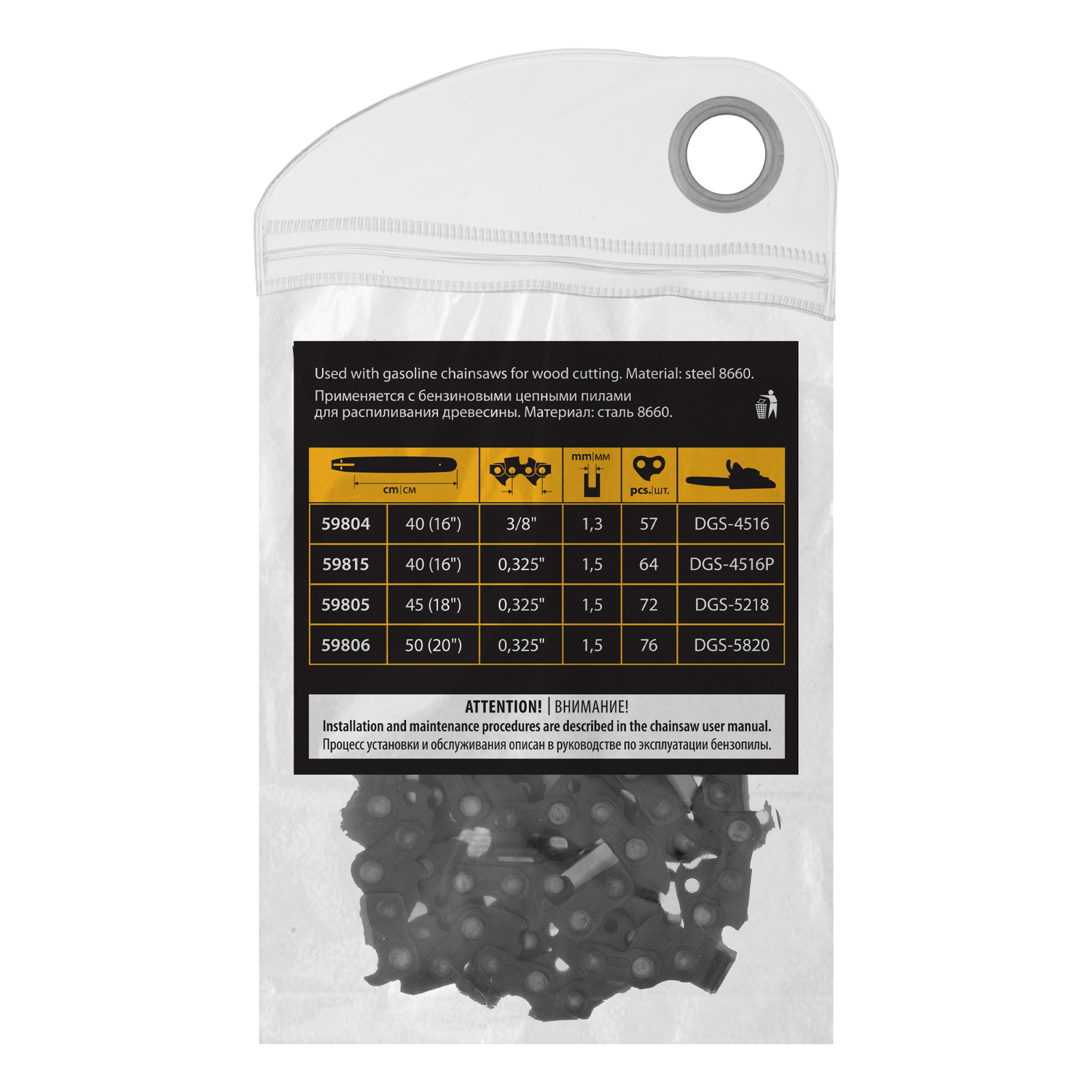 Цепь для бензопилы DGS-4516P, шина 40 см (16") шаг 0,325", паз 1,5 мм, 64 звена Denzel в Казани