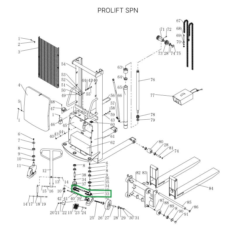 Цепь поворотного колеса в сборе с натяжителем для штабелеров SPN в Казани