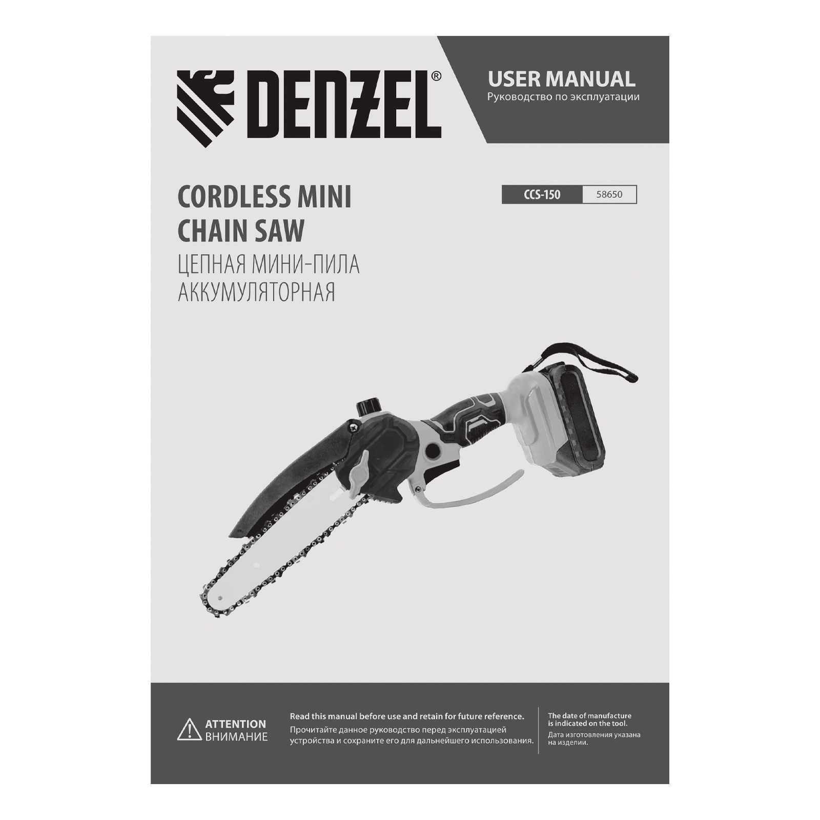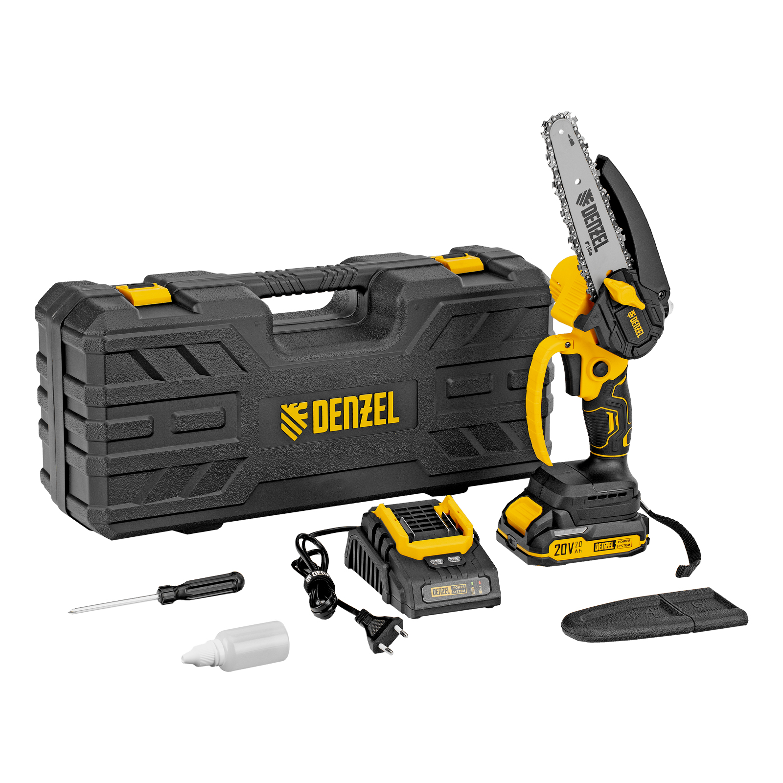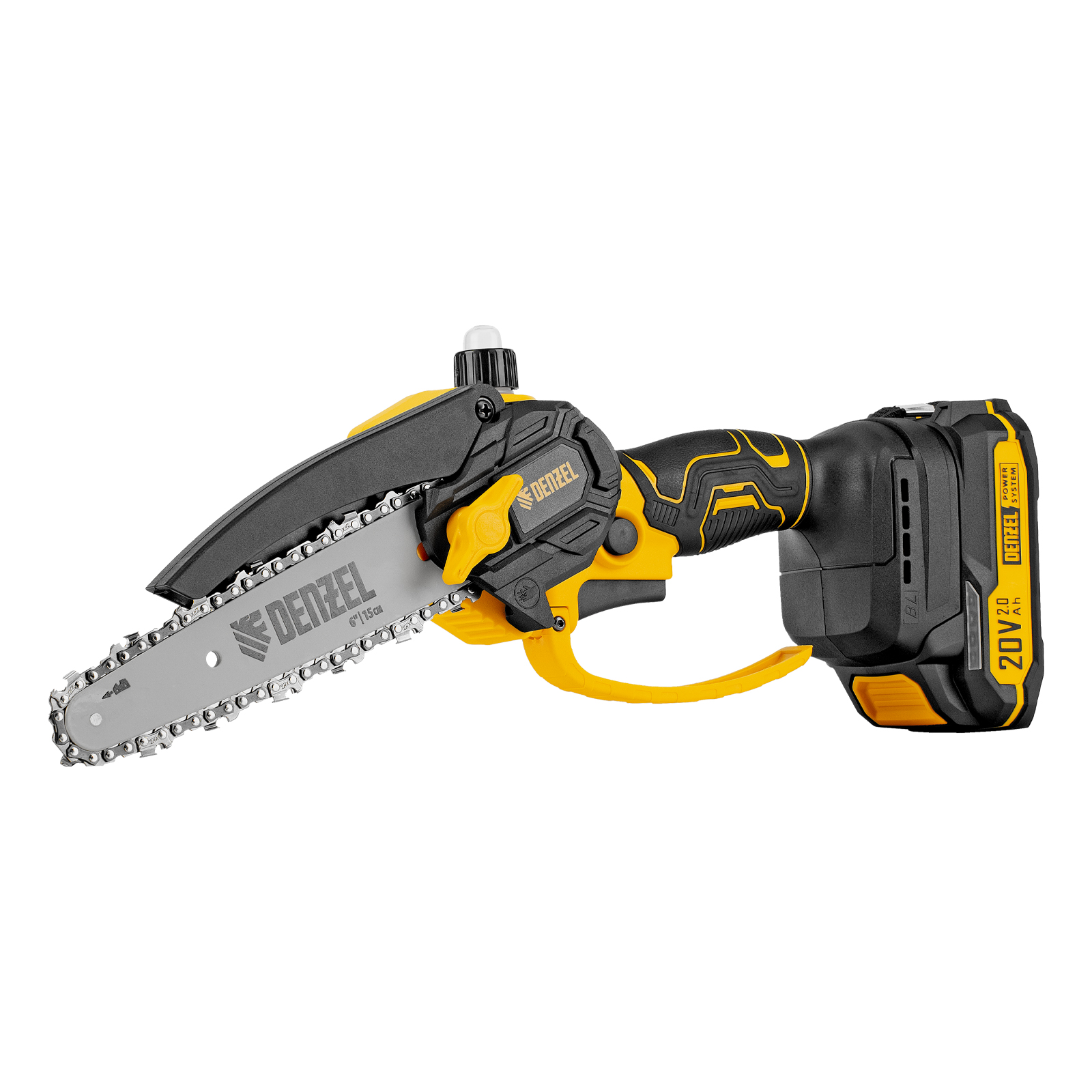 Цепная мини-пила аккумуляторная бесщет., CCS-150, шина 150 мм, Li-Ion, 20 В Denzel в Казани