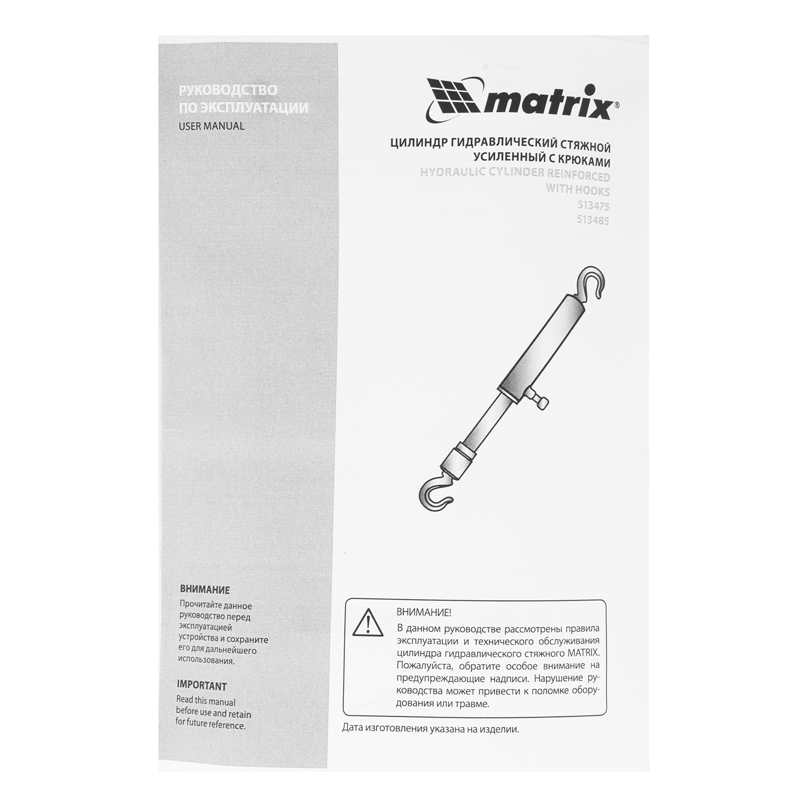 Цилиндр гидравлический, 10 т, стяжной усиленный с крюками Matrix