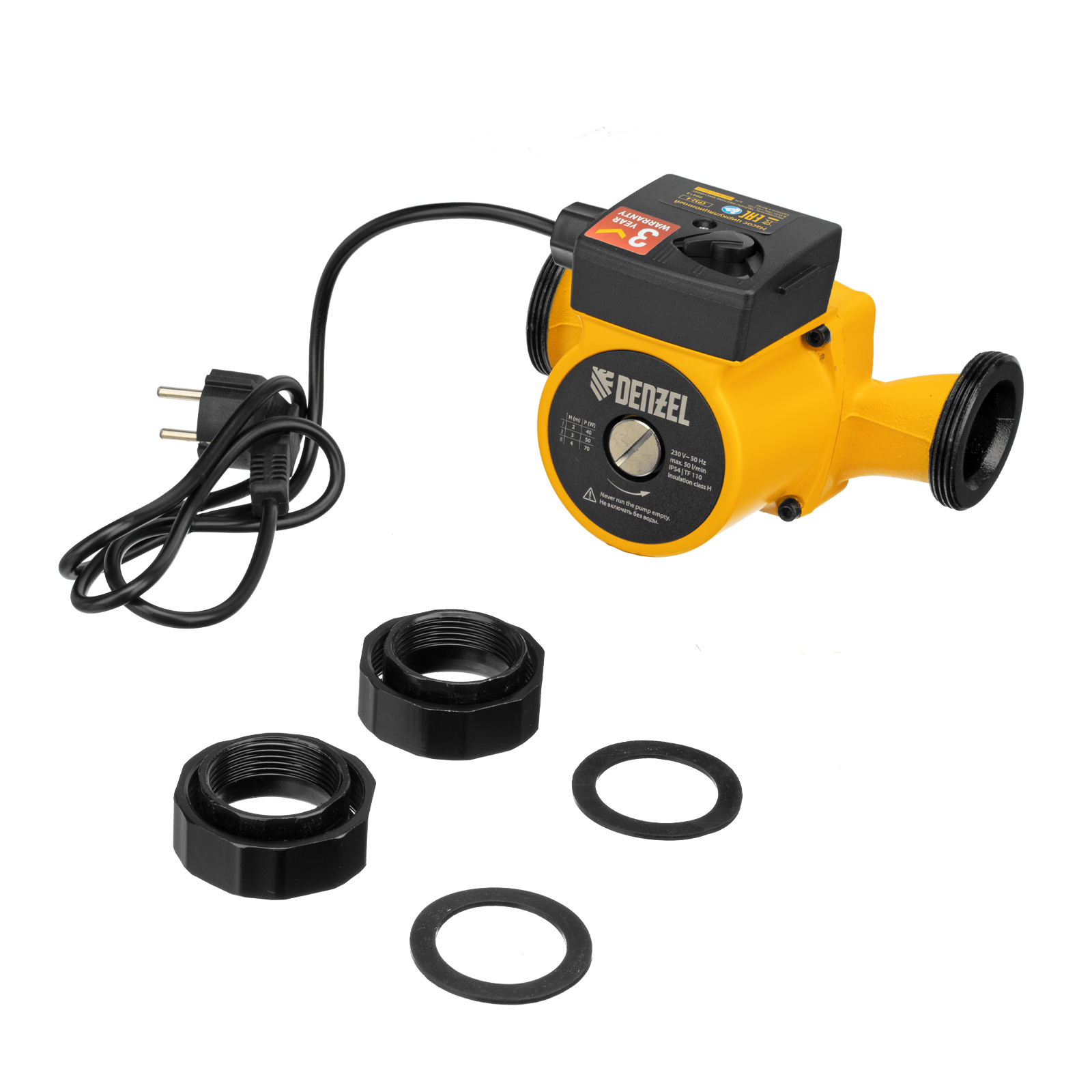 Циркуляционный насос CP32-4, напор 4 м, 50 л/мин, 1 м кабель, монт. длина 180 мм Denzel