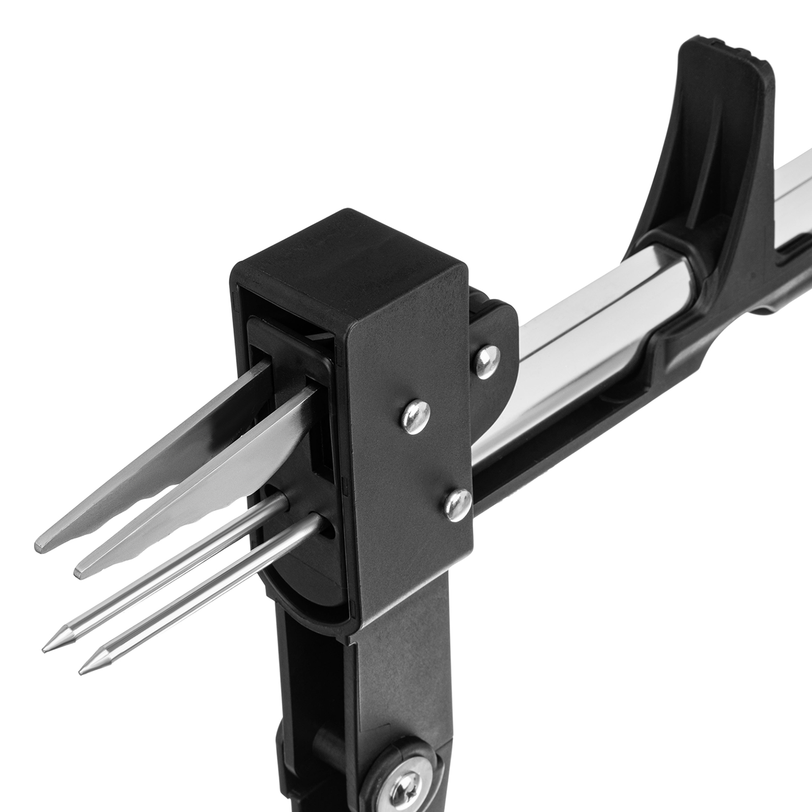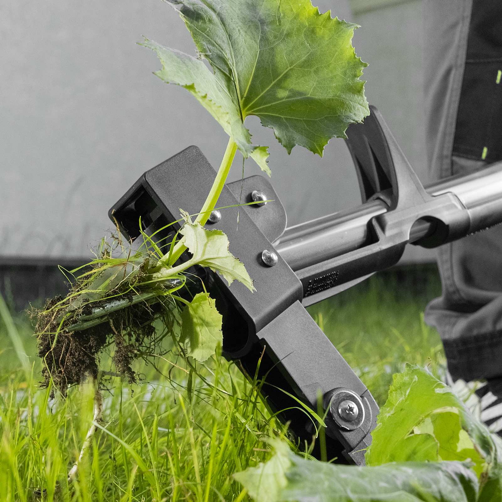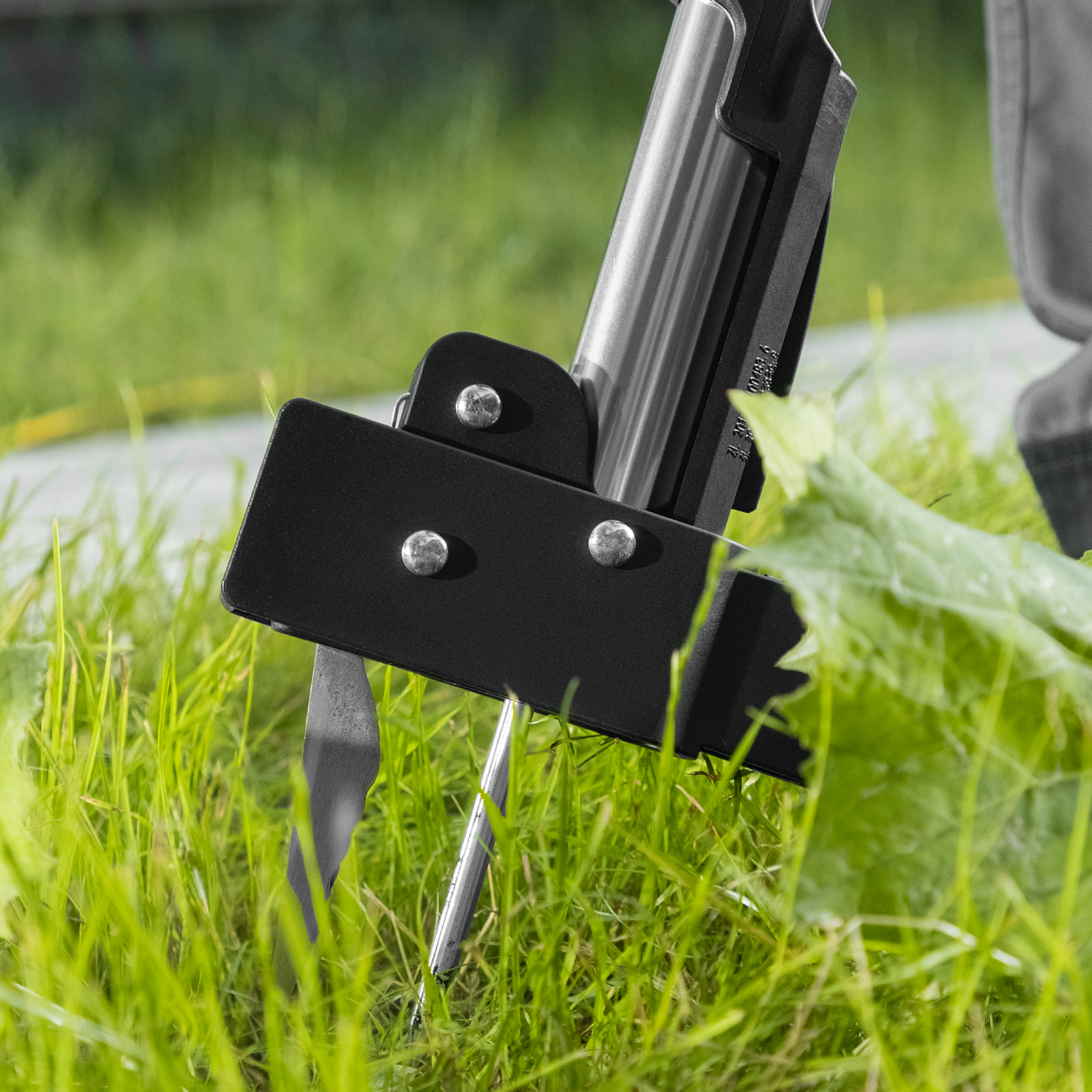 • Упор для ноги, расположенный в основании черенка, облегчает введение игл в грунт.