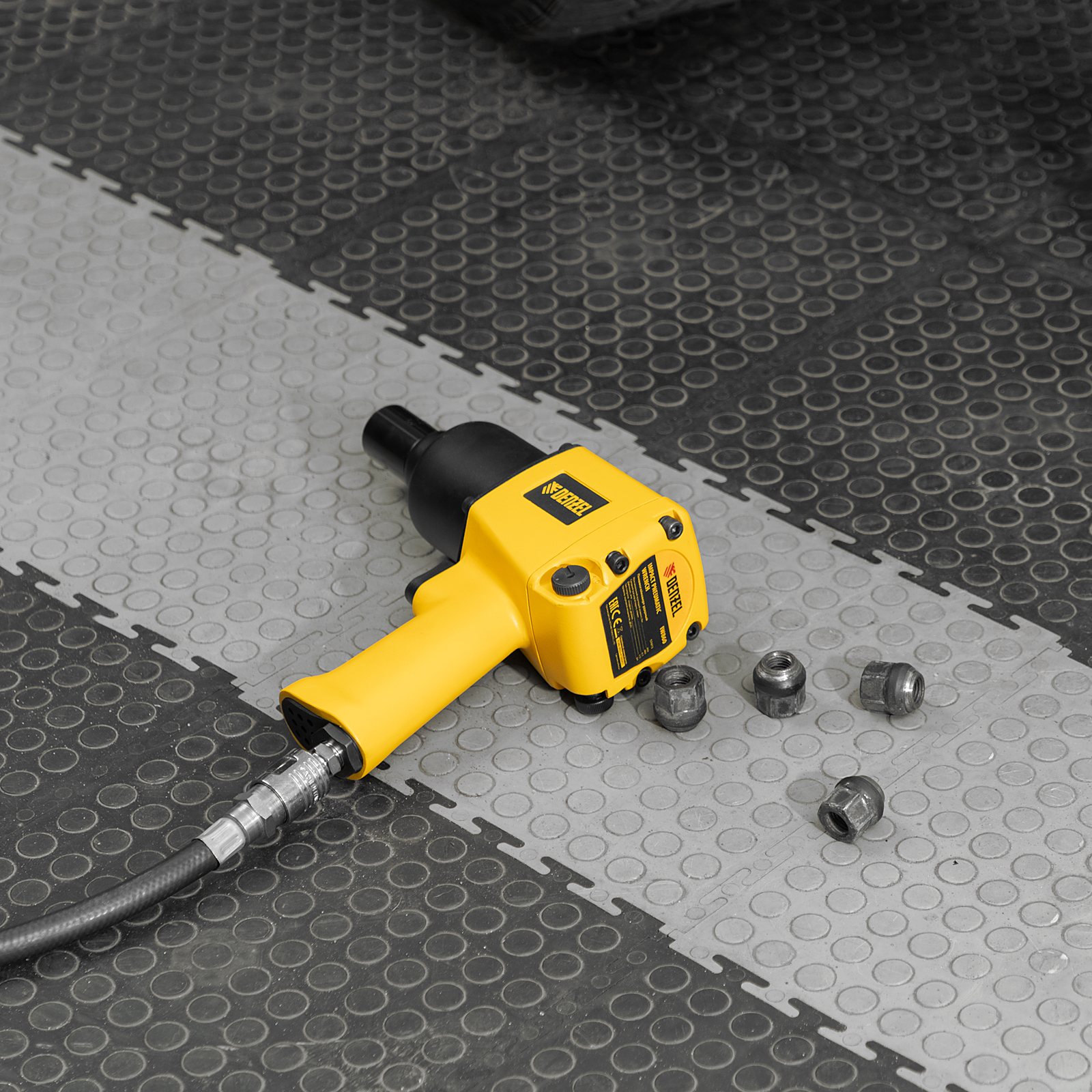 - Простая подготовка к работе — гайковерт подключается к компрессору при помощи быстроразъемного соединения.
