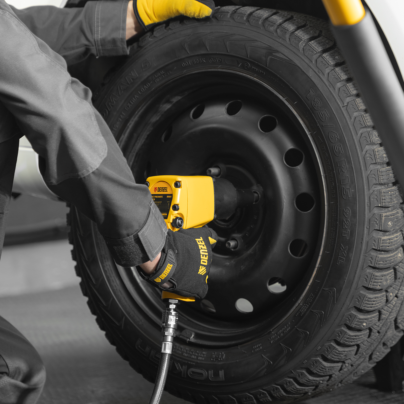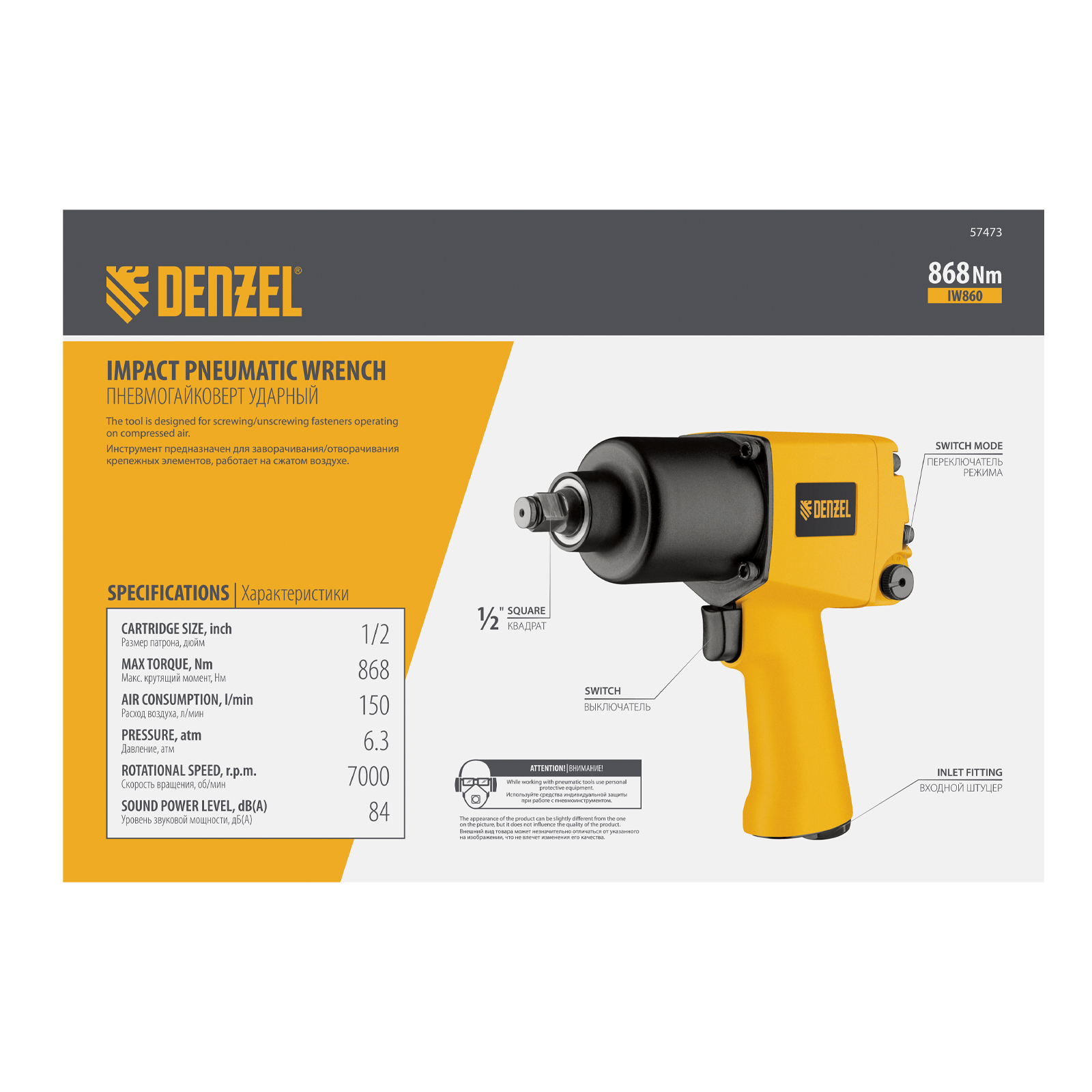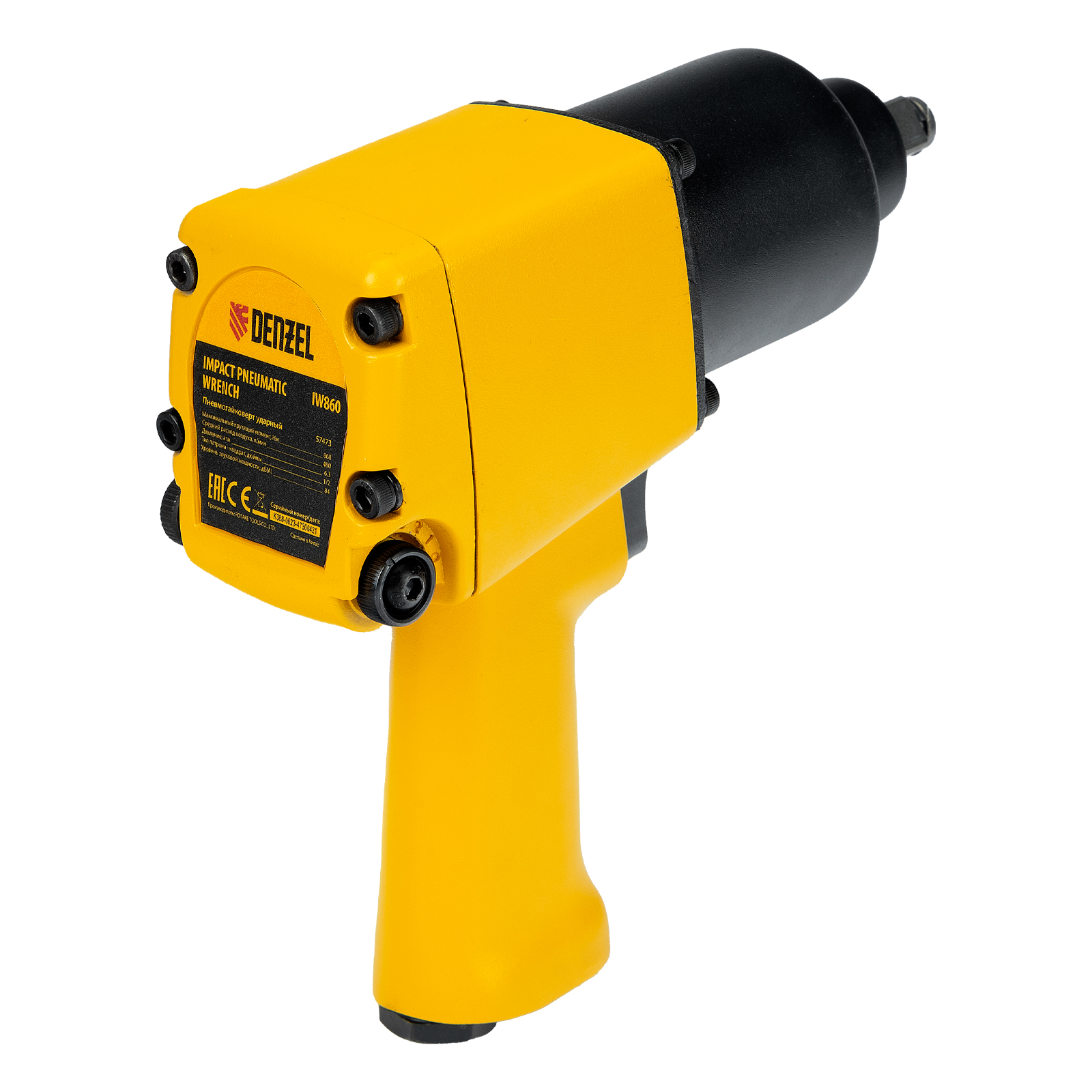 Ударный пневмогайковерт IW860+набор головок, 1/2", 7000 об/мин, 868 Нм Denzel