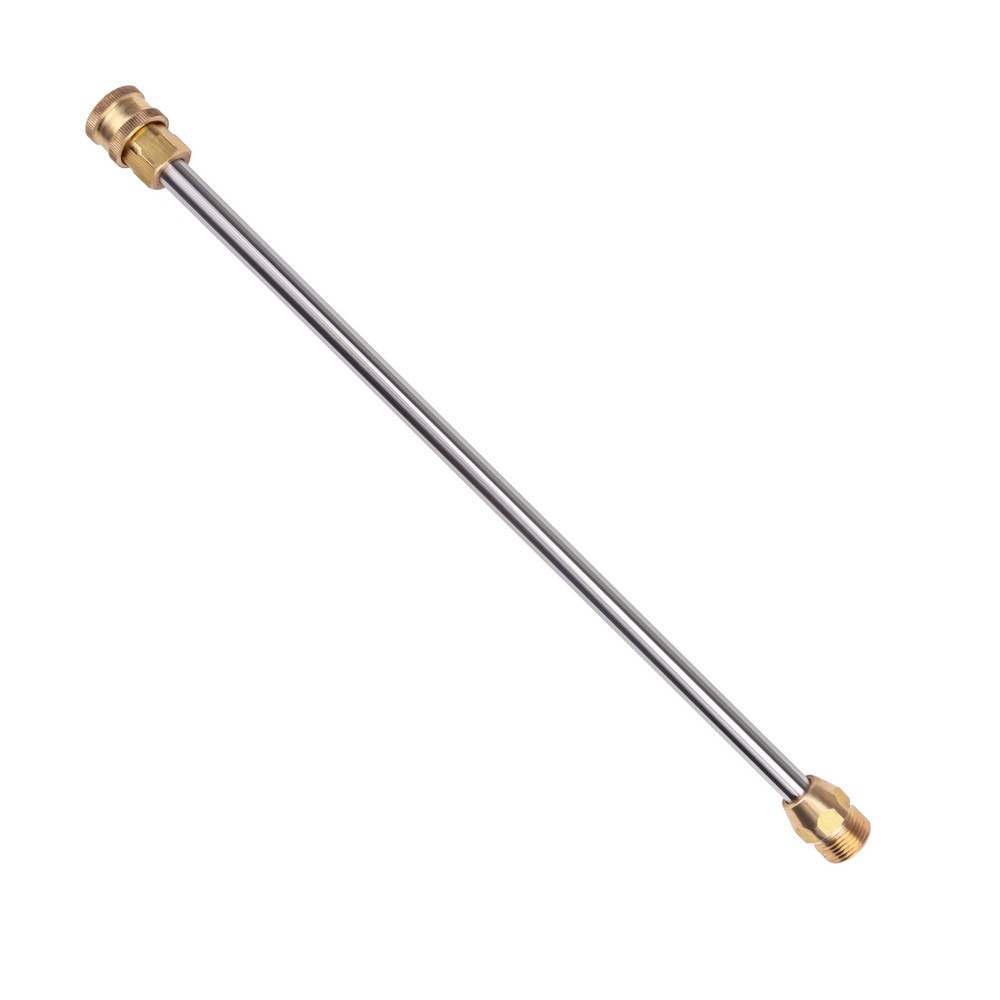 Удлинительный адаптер для пистолетов AG1275 моек высокого давления KVAZARRUS K5 EXPERT, K7. Используется для присоединения к пистолету аппаратов с помощью резьбового соединения M22 x 1,5 и дальнейшей установки струйных насадок, сопел и пеногенераторов c помощью быстрозажимного соединения. Обеспечивает безопасность и удобство работы при использовании струйных насадок высокого давления и сопел, а также предусматривает установку пеногенератора. Удлинительный адаптер изготовлен из нержавеющей стали, а резьбовое соединение и быстрозажимной разъем из латуни, что обеспечивает максимальную прочность конструкции и ее долговечность. Благодаря дополнительной длине имеется возможность очищать более труднодоступные места.