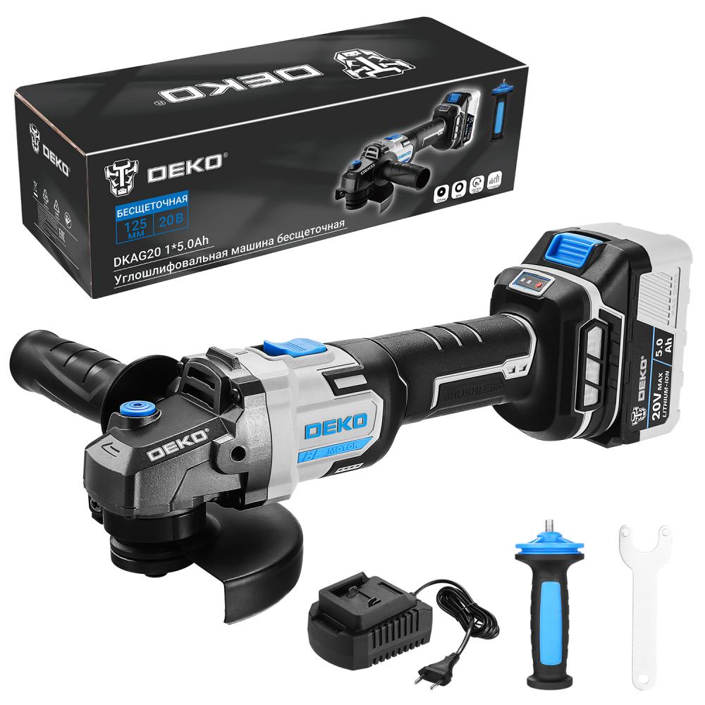 Углошлифовальная машина бесщеточная DEKO DKAG20, 20В, 1*5.0Ач