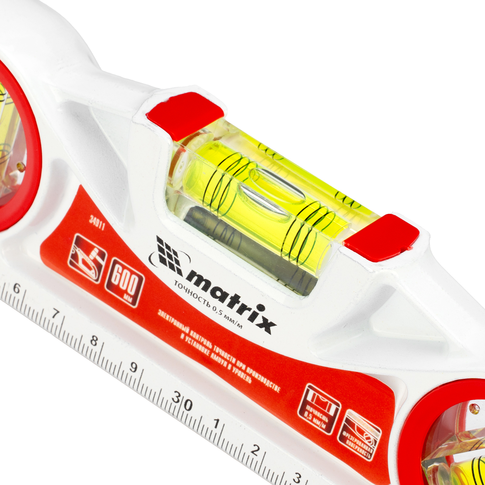Уровень алюминиевый литой, фрезерованный, 3 глазка, две ударные площадки, 600 мм Matrix в Казани