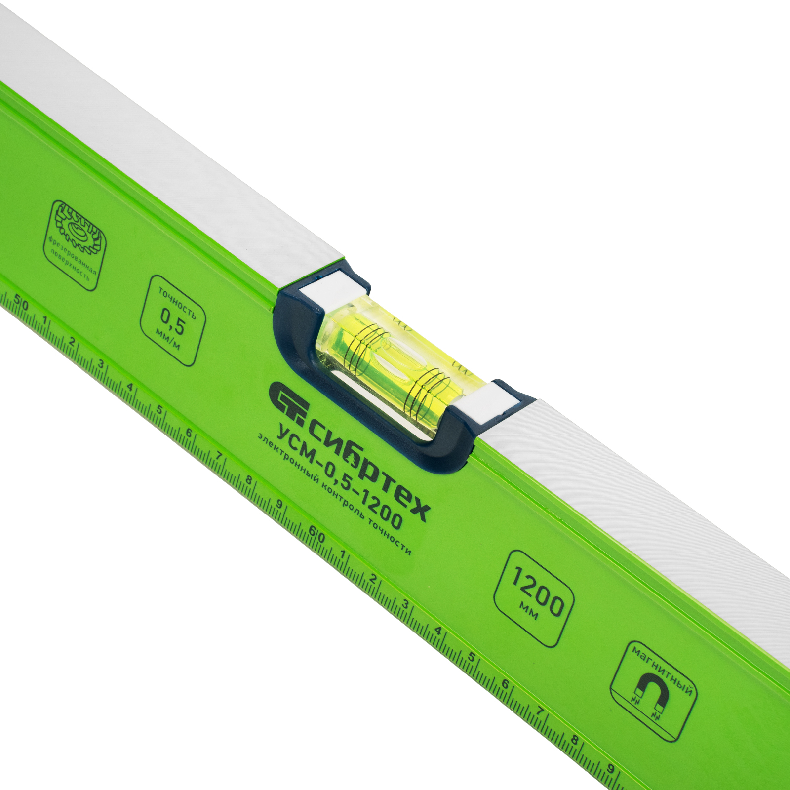 Уровень алюминиевый магнитный Сибртех УСМ-0,5-1200 34118 длиной 1200 мм, фрезерованный, с рукоятками и 3 глазками, позволяет оценить ровность поверхностей и определить отклонения относительно горизонтали, вертикали и угла 45°. Будет полезен на строительной площадке, а также для выполнения работ по облицовке и отделке помещений, для монтажа конструкций.