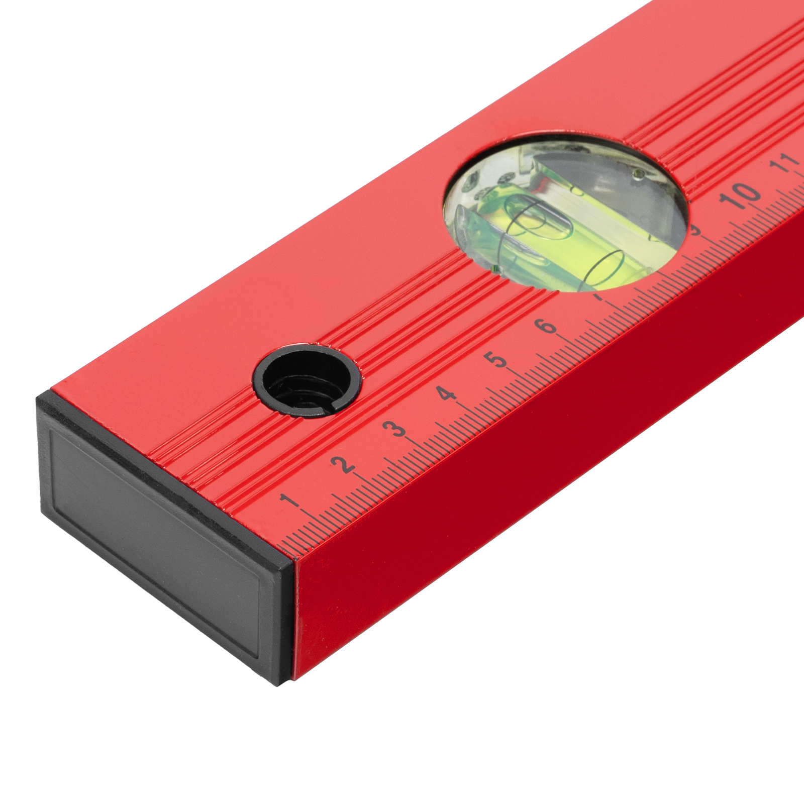 - Мерная шкала на корпусе уровня позволяет использовать его в качестве линейки.
