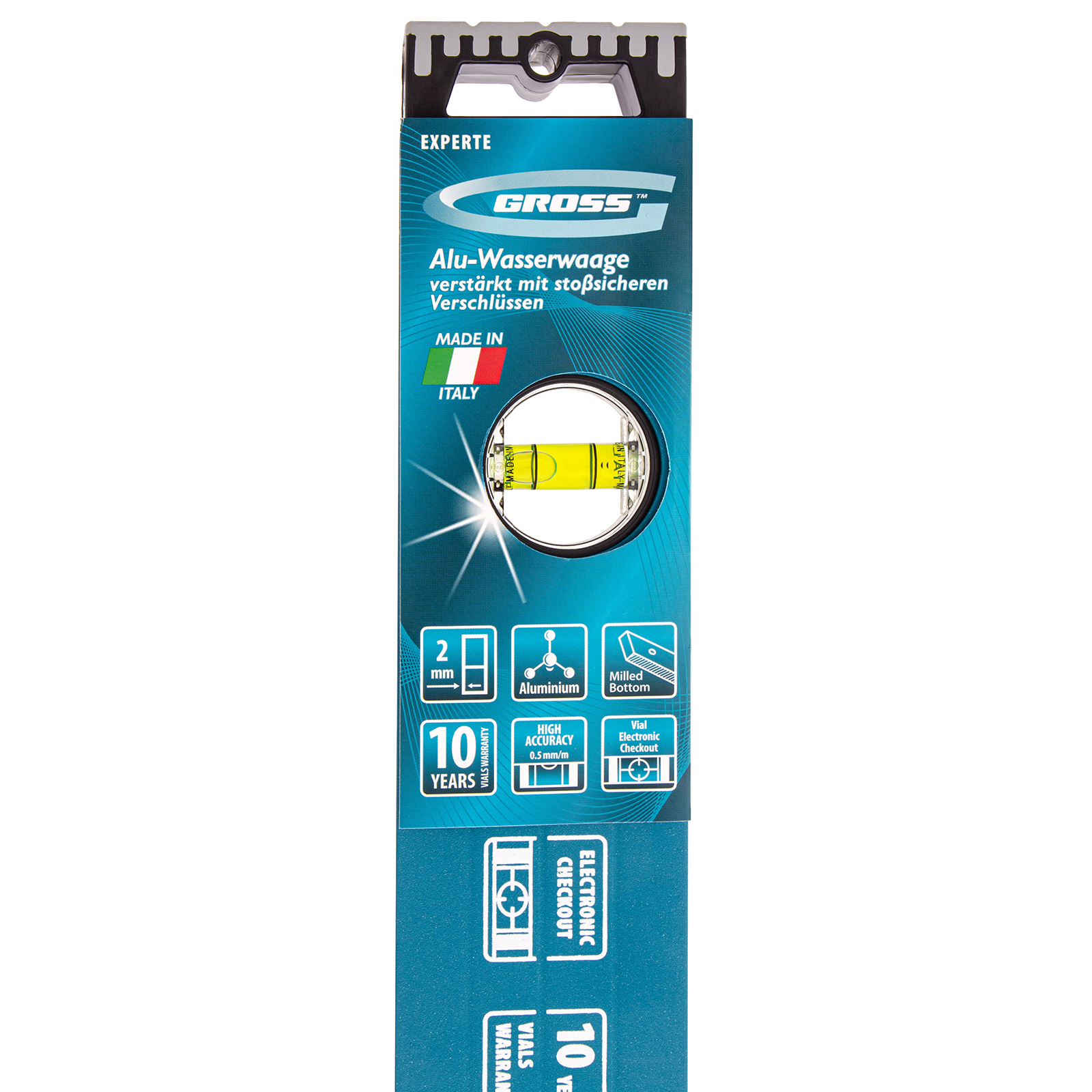 Усиленный алюминиевый уровень Gross 34332 длиной 1200 мм, с ударопрочными заглушками, рукоятками и 3 глазками, — универсальный инструмент для решения профессиональных задач на строительной площадке. Благодаря ему можно выровнять поверхности относительно горизонтали и вертикали или проверить соответствие углу 45 градусов.