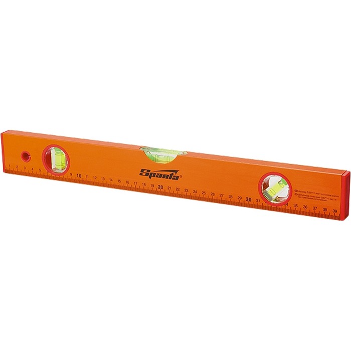 Алюминиевый уровень Sparta 330285 длиной 1800 мм, желтого цвета, с 3 глазками и линейкой, будет полезен при проведении строительных, отделочных, облицовочных и других работ, требующих особой точности. Уровень с тремя глазками поможет определить отклонение от горизонтальной и вертикальной плоскости, выставить угол 45°, измерить предметы и т. д.