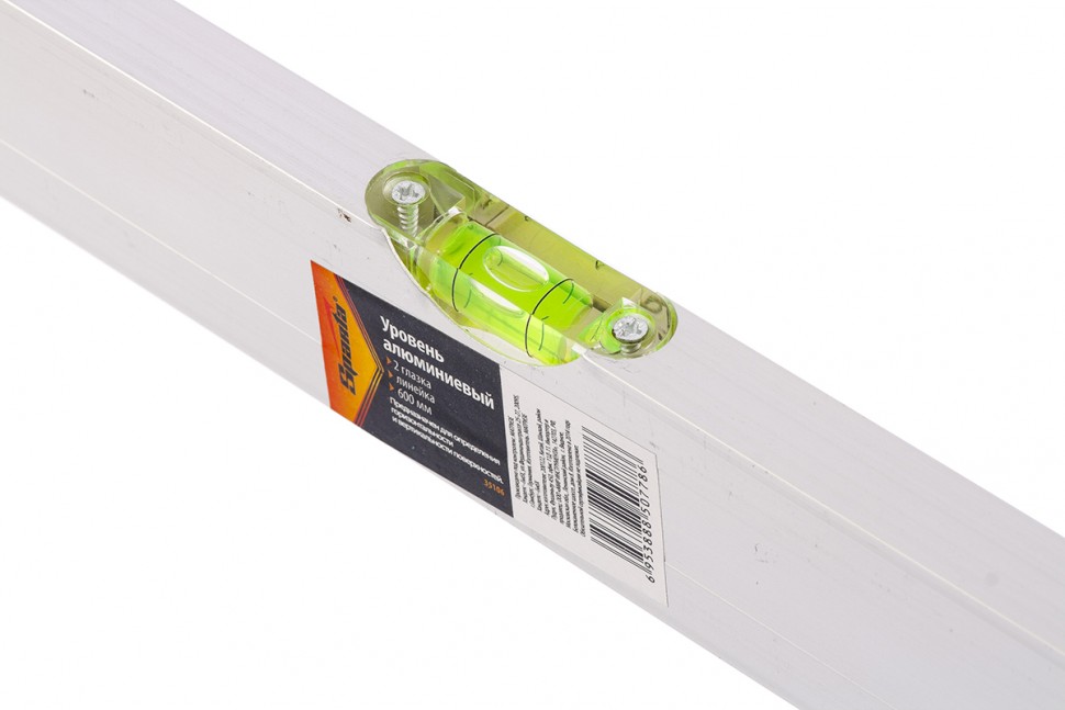 Алюминиевый уровень Sparta 35106 длиной 600 мм, с 2 глазками и линейкой, рассчитан на применение в быту и в производственных условиях. Он поможет добиться точного выстраивания разметочных линий для последующей установки конструкций, полок, укладки облицовочных материалов и т.д. Две пузырьковые ампулы обеспечивают точный контроль отклонений поверхностей от горизонтальной и вертикальной плоскостей.,Для определения отклонения вертикали 90 градусов необходимо использовать пузырьковую ампулу только в верхнем положении уровня. Только базовая поверхность является рабочей (противоположная ампуле 180 градусов).