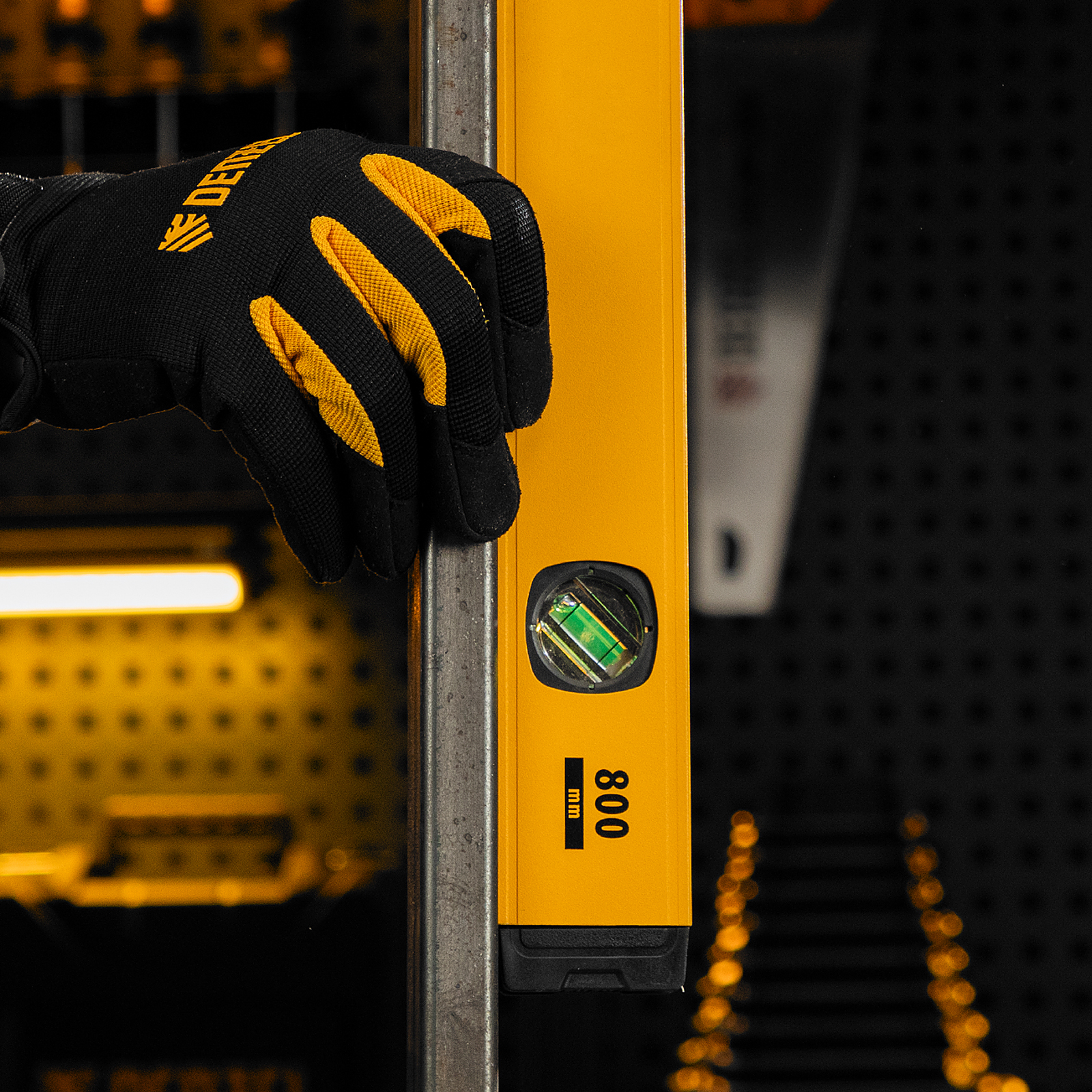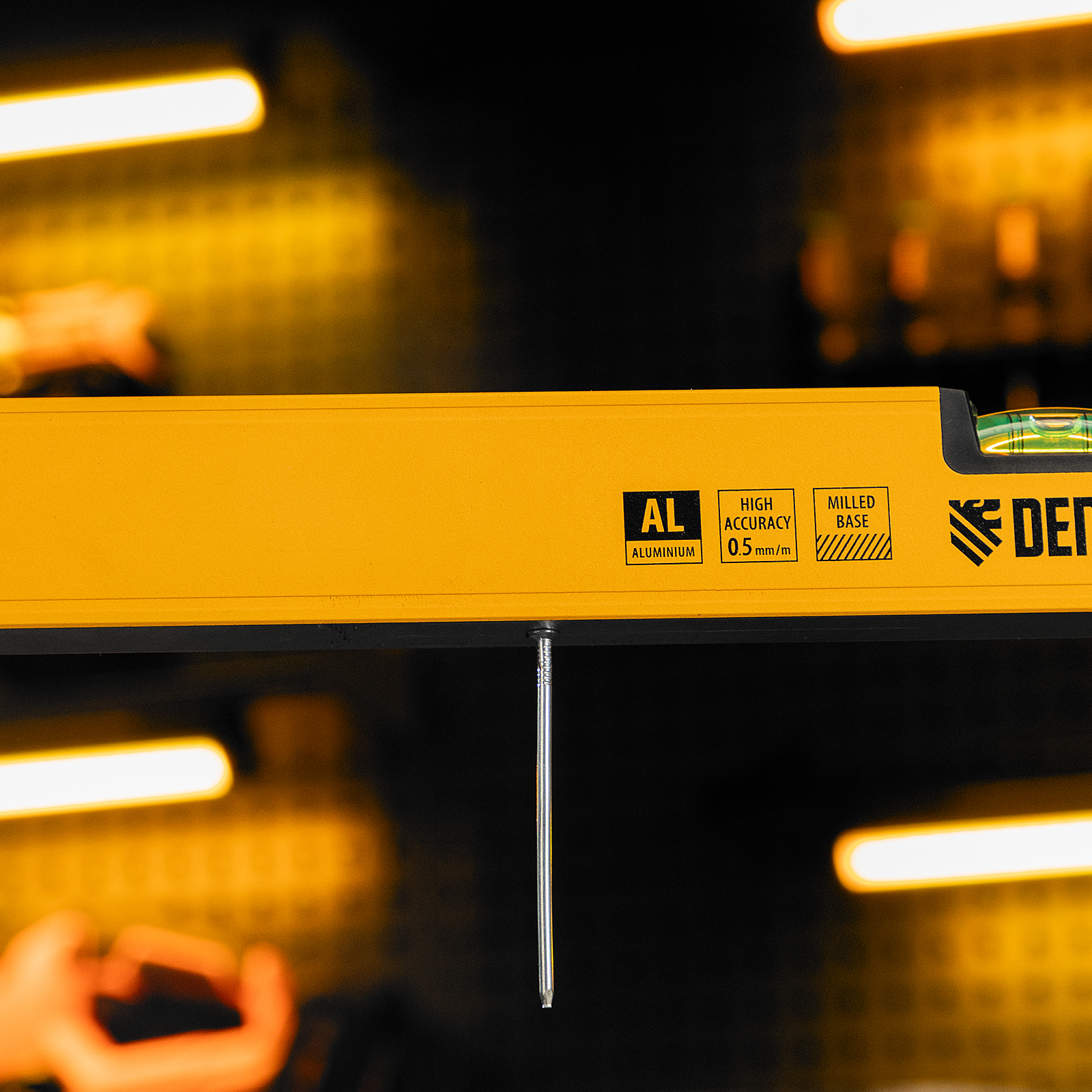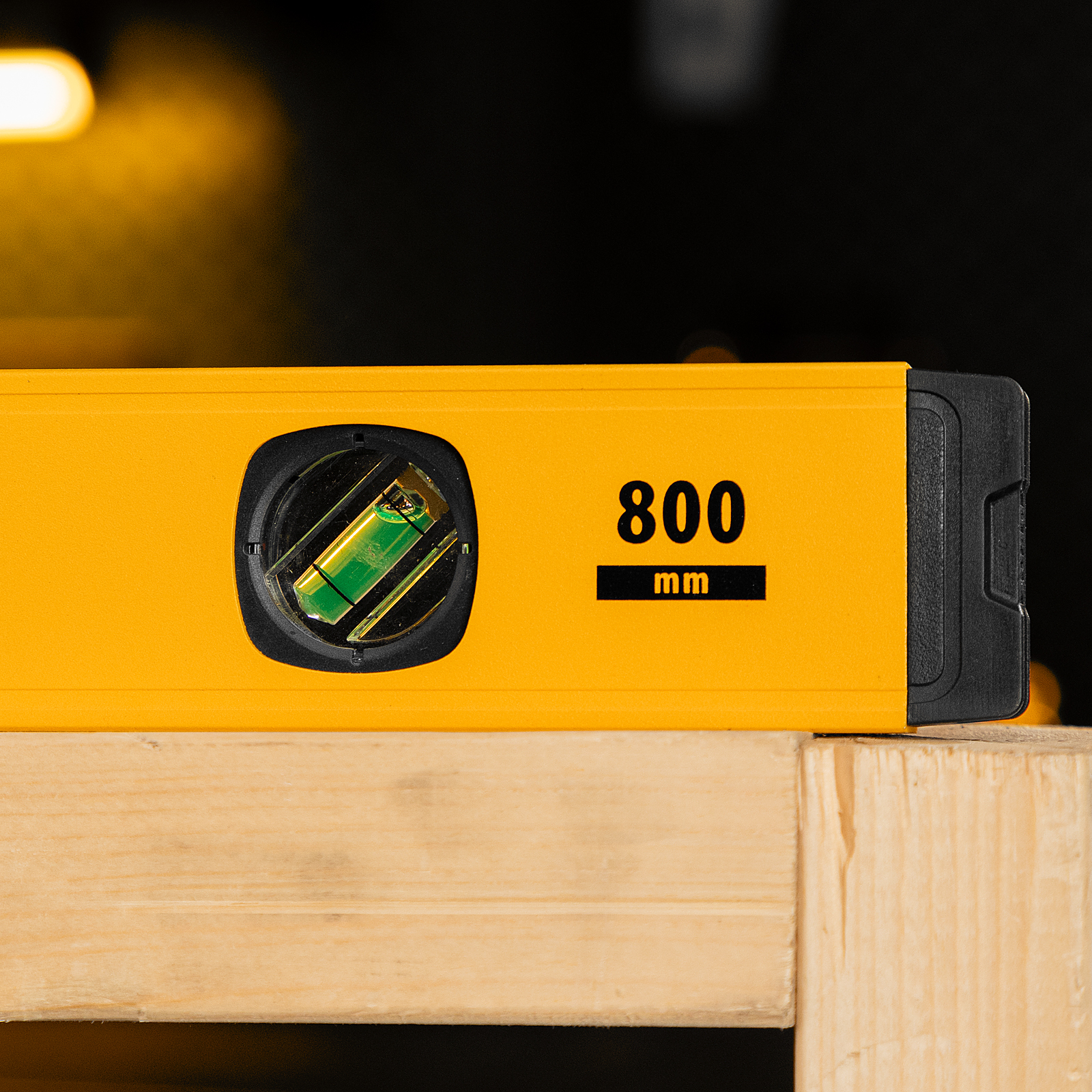 Алюминиевый фрезерованный уровень Denzel 33692 длиной 800 мм, с магнитом и 3 глазками, из которых 1 зеркальный, предназначен для контроля отклонений от горизонтальной, вертикальной и поверхности под углом 45° с точностью 0,5 мм/м. 3 пузырьковые камеры 90°, 180° и 45° позволяют быстро проверить правильность разметки. Инструмент незаменим при проведении строительных, ремонтных, сантехнических работ.