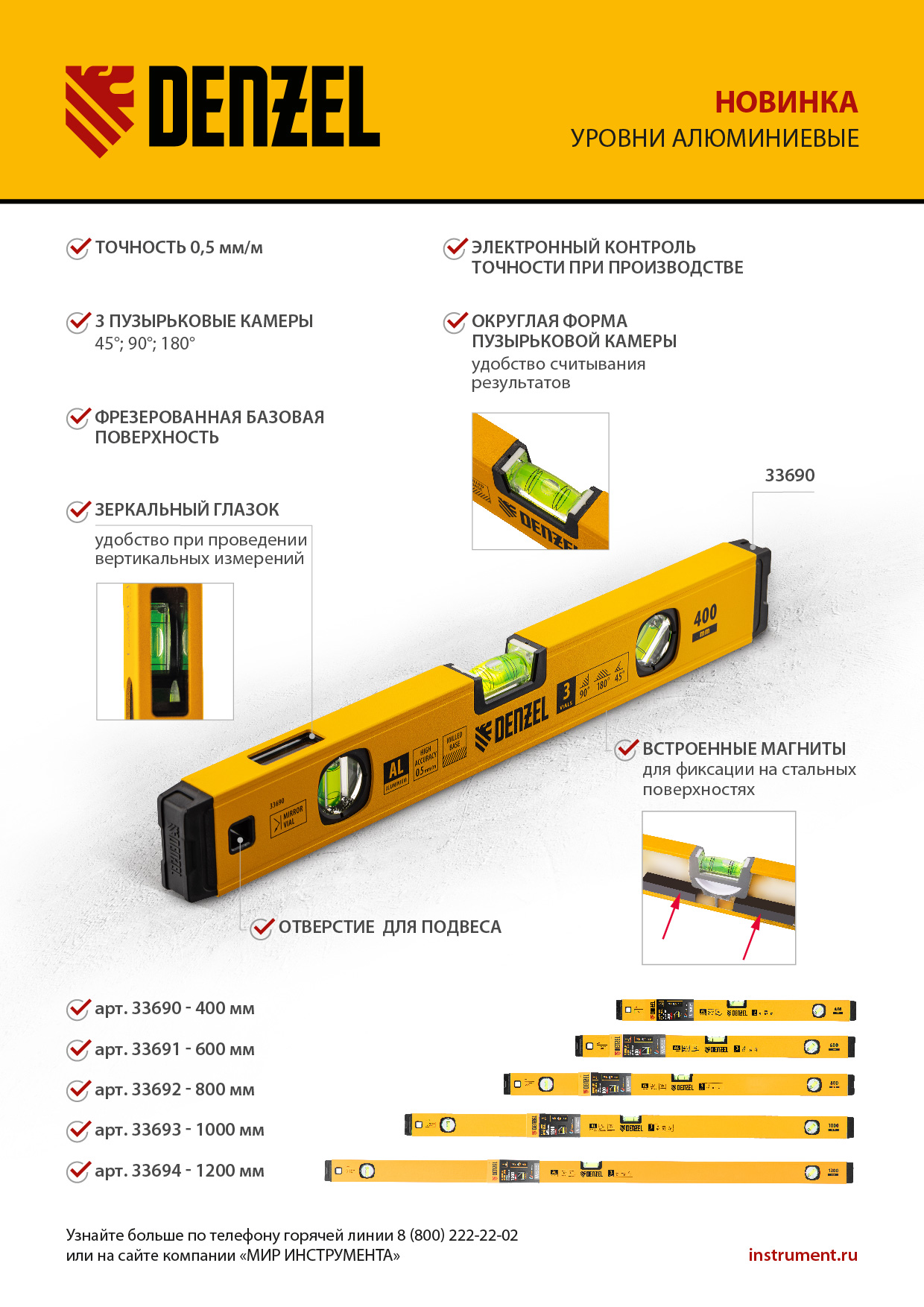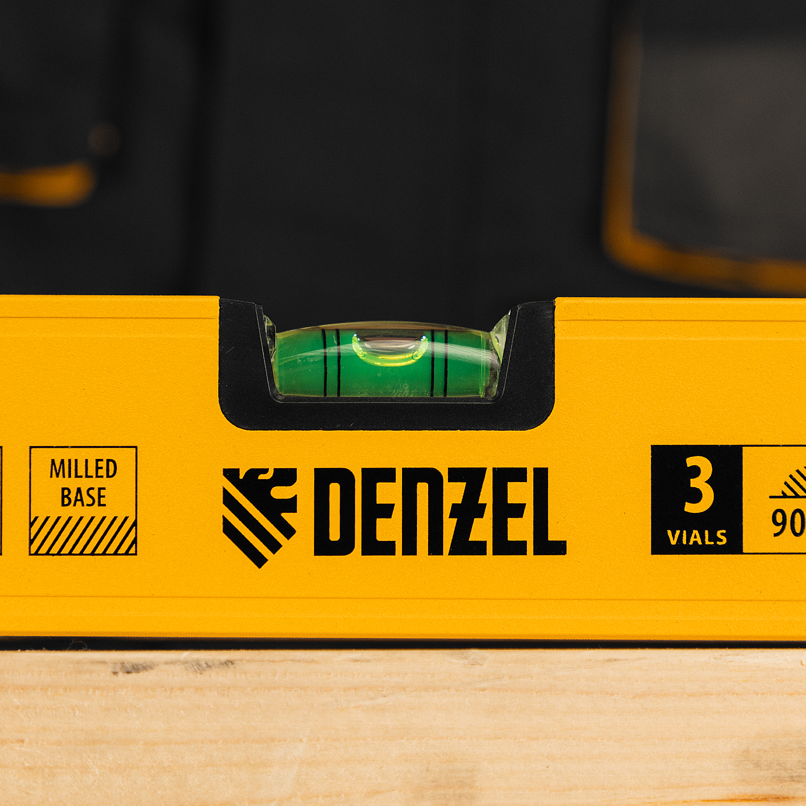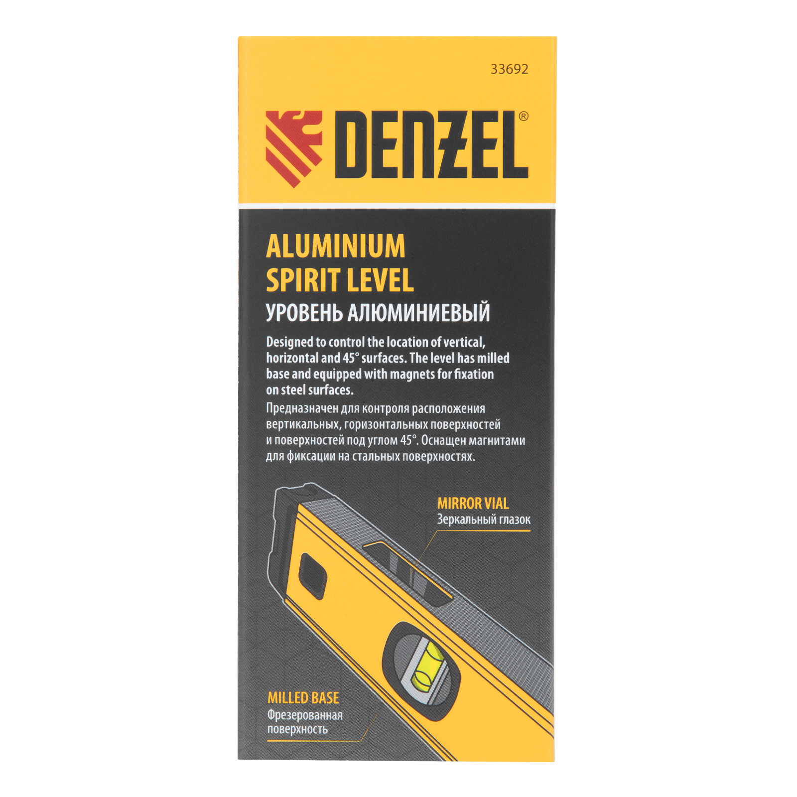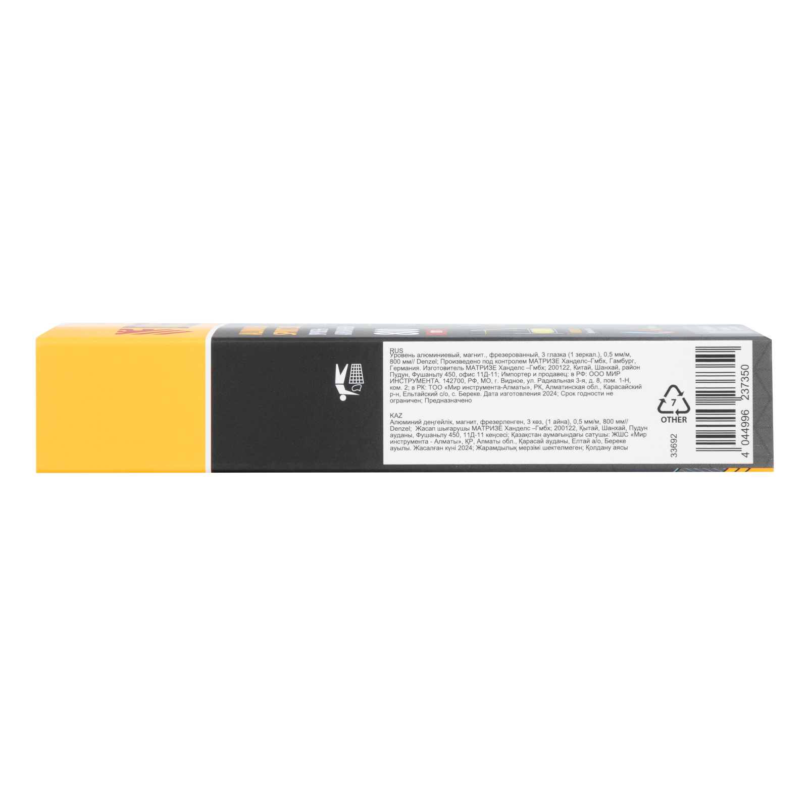 Уровень алюминиевый, магнит, фрезерованный, 3 глазка (1 зеркал.) 0,5 мм/м, 800 мм Denzel в Казани