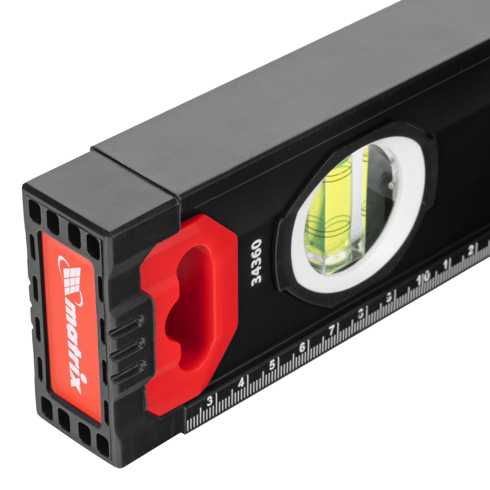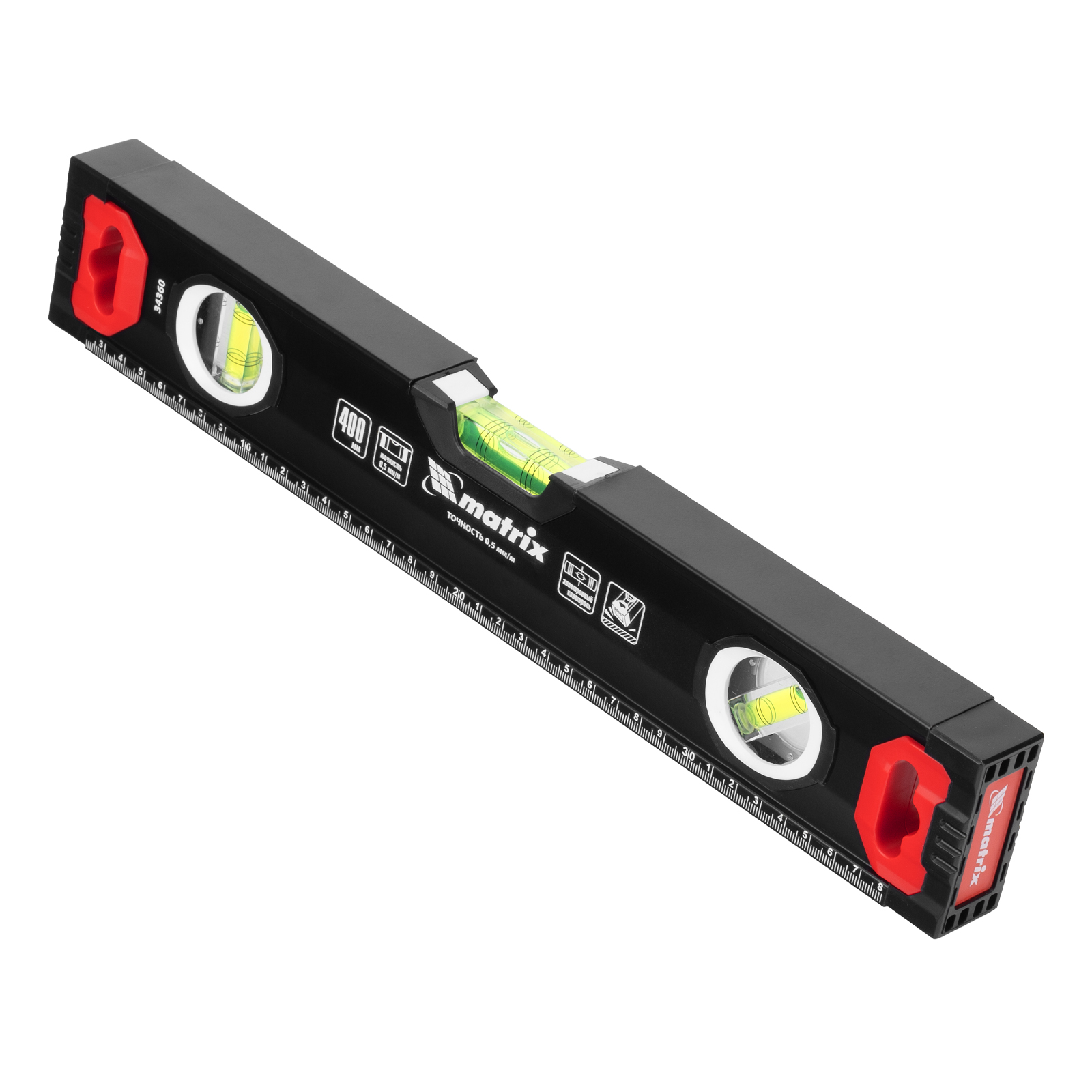 Уровень алюминиевый усиленный Matrix 34360 длиной 400 мм, фрезерованный, с 3 глазками, используется для проверки точности горизонтальных и вертикальных поверхностей и угла 45°. Инструмент повышает качество монтажных, отделочных и других работ, незаменим на строительной площадке.