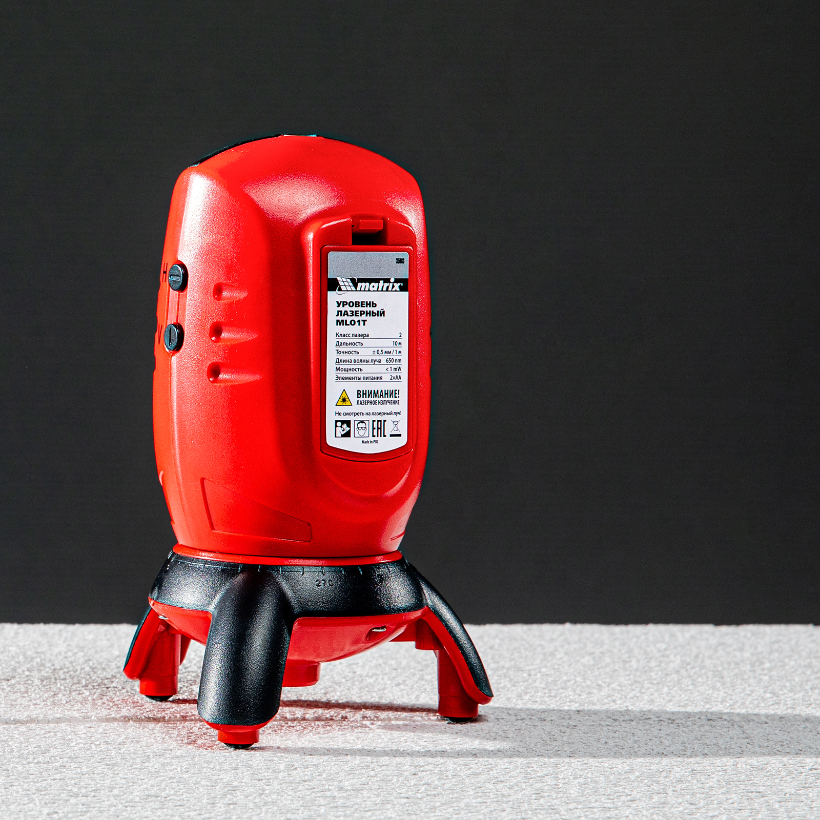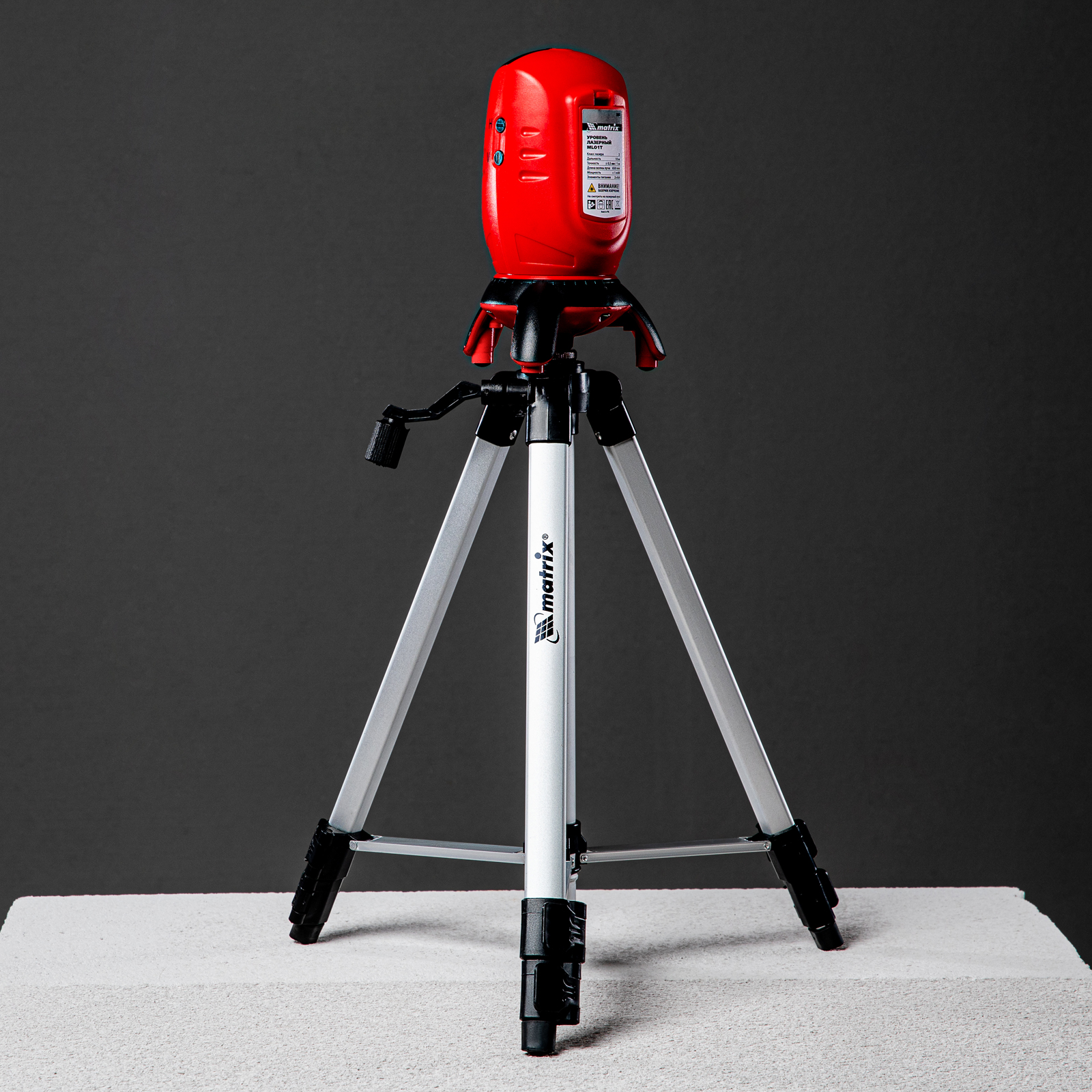 Лазерный уровень ML01T, дальность 10 м, точность ± 0,5 мм, / 1 м, длина волны 650 нм, проекция 1 вертикальная 1 горизонтальная плоскость, резьба под штатив 5/8", штатив в комплекте Matrix