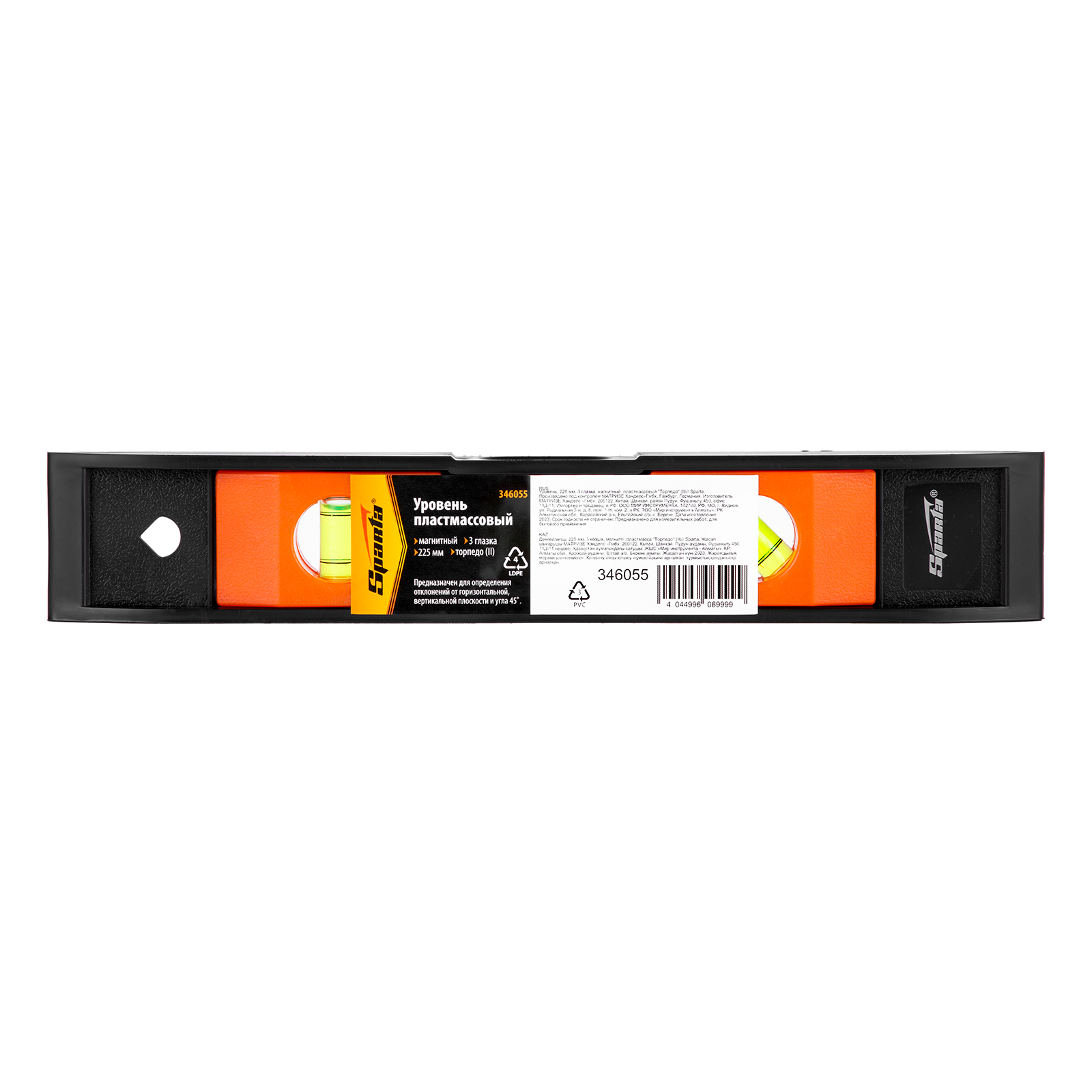 Уровень, 225 мм, 3 глазка, пластмассовый "Торпедо" (II) Sparta в Казани