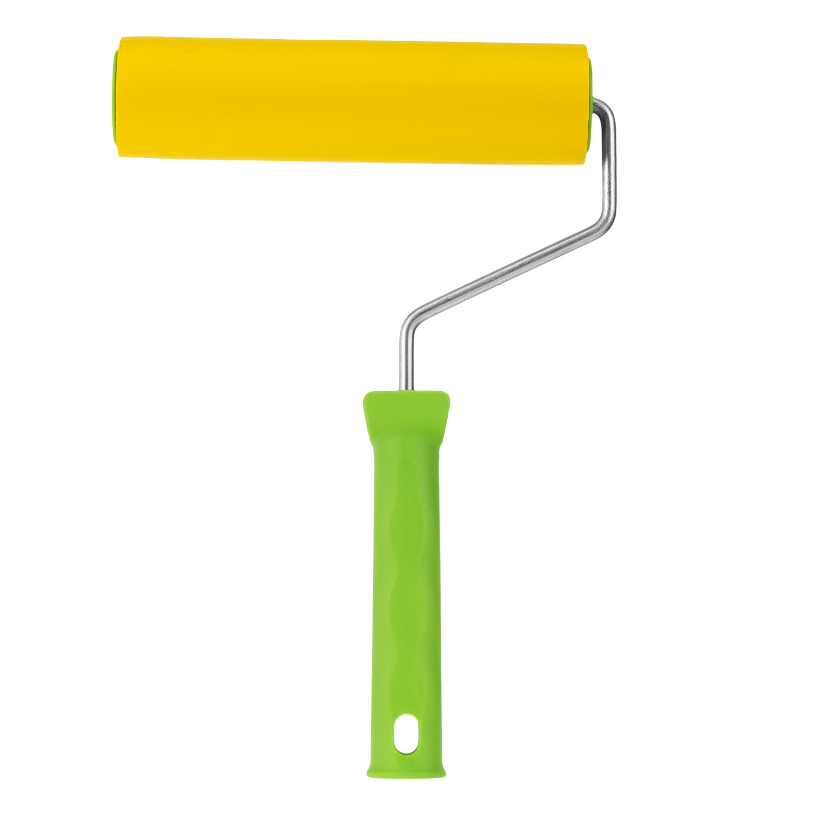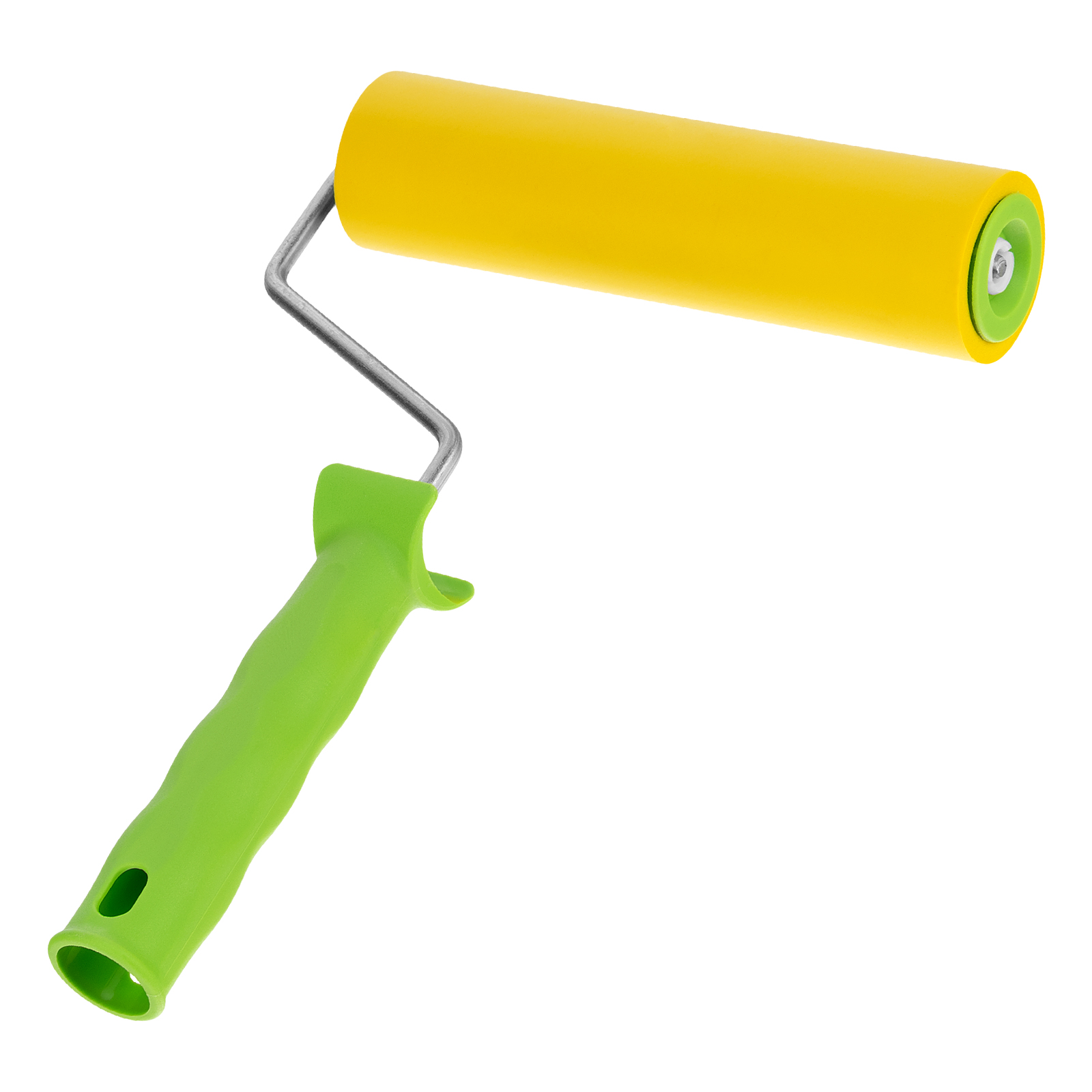 Резиновый прижимной валик Сибртех 81034 длиной 180 мм, с ручкой диаметром 6 мм, используется для ремонтно-строительных работ. Подходит для наклеивания всех видов обоев, а также других тонких листовых материалов. Позволяет быстро и равномерно разгладить полотно на стыках, удалив пузырьки воздуха.