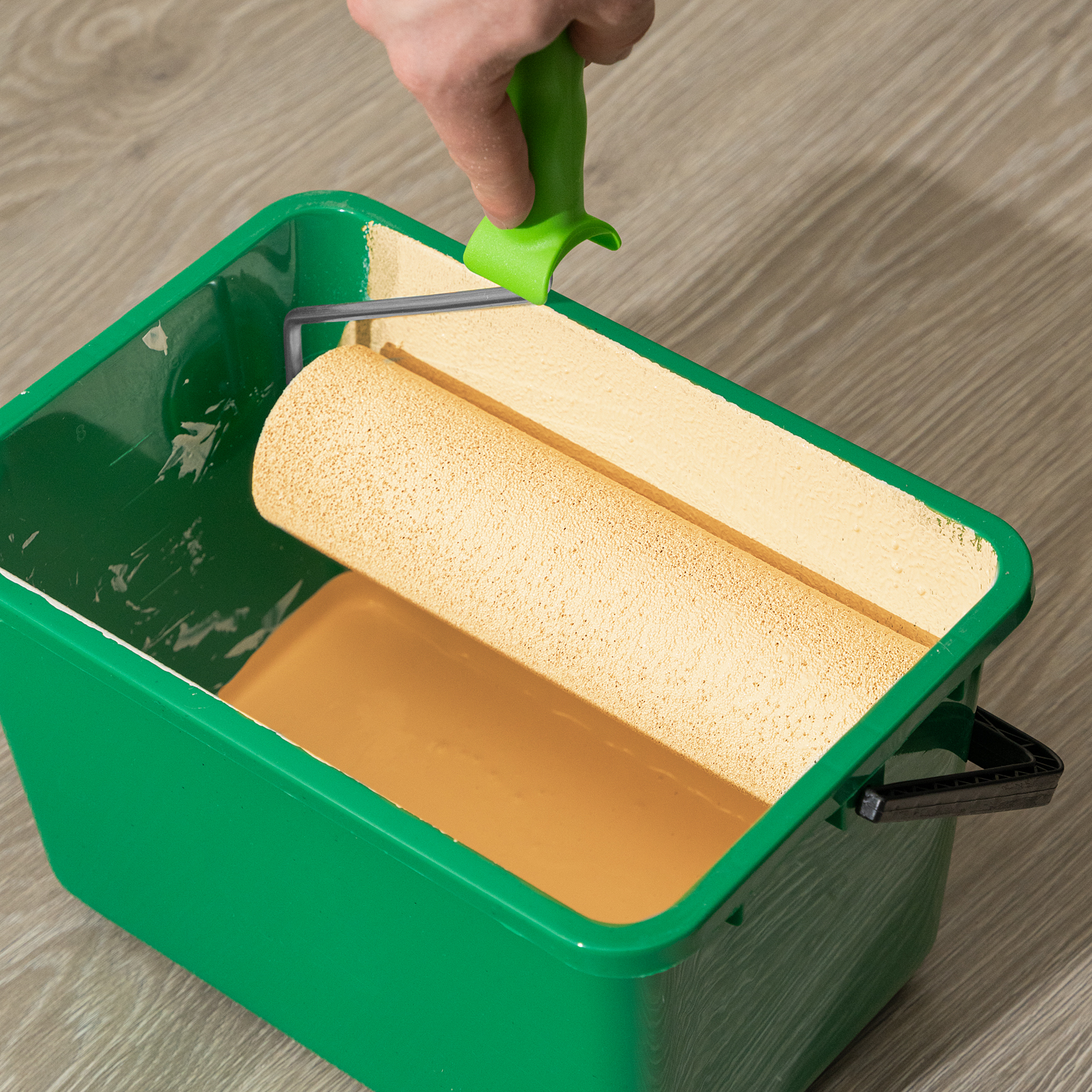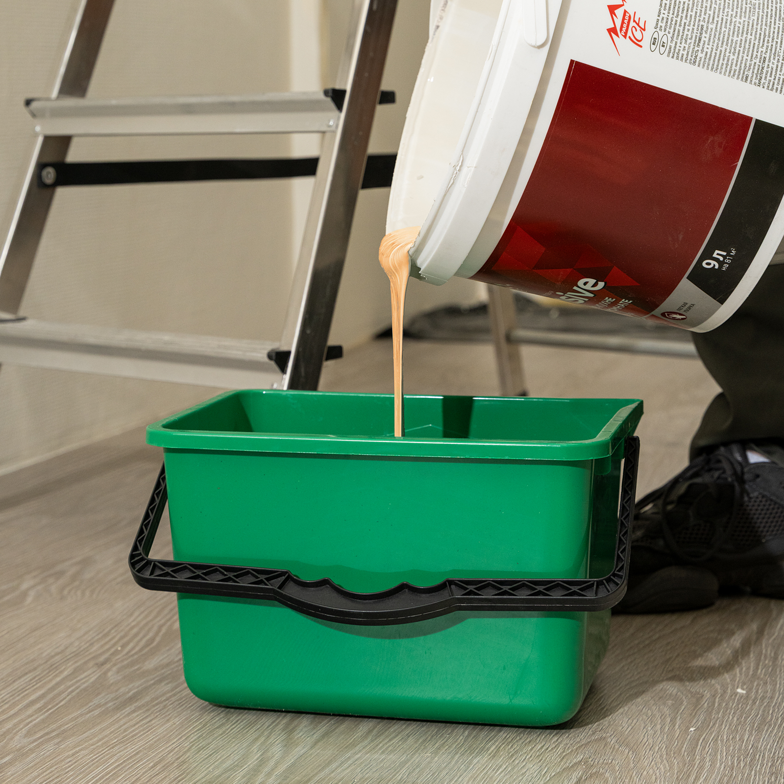 - Удобный контроль количества краски — внутри ведра есть мерная шкала.