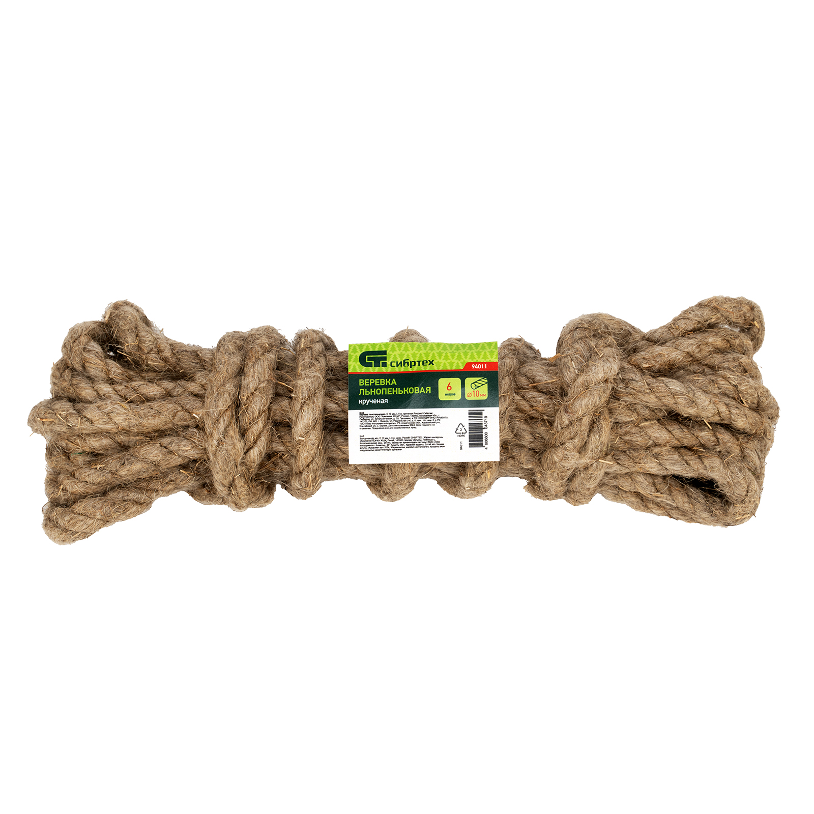 Льнопеньковая крученая веревка Сибртех 94011 диаметром 10 мм и длиной 6 м крепко связывает и закрепляет различные предметы и грузы. Применяется в быту, сельском хозяйстве, торговле, промышленности и строительстве.