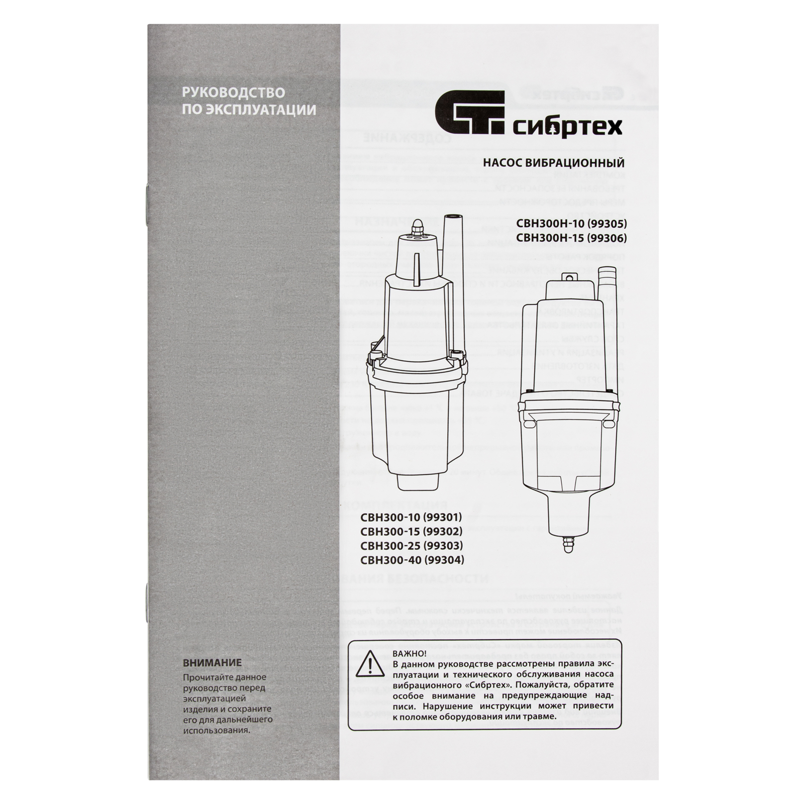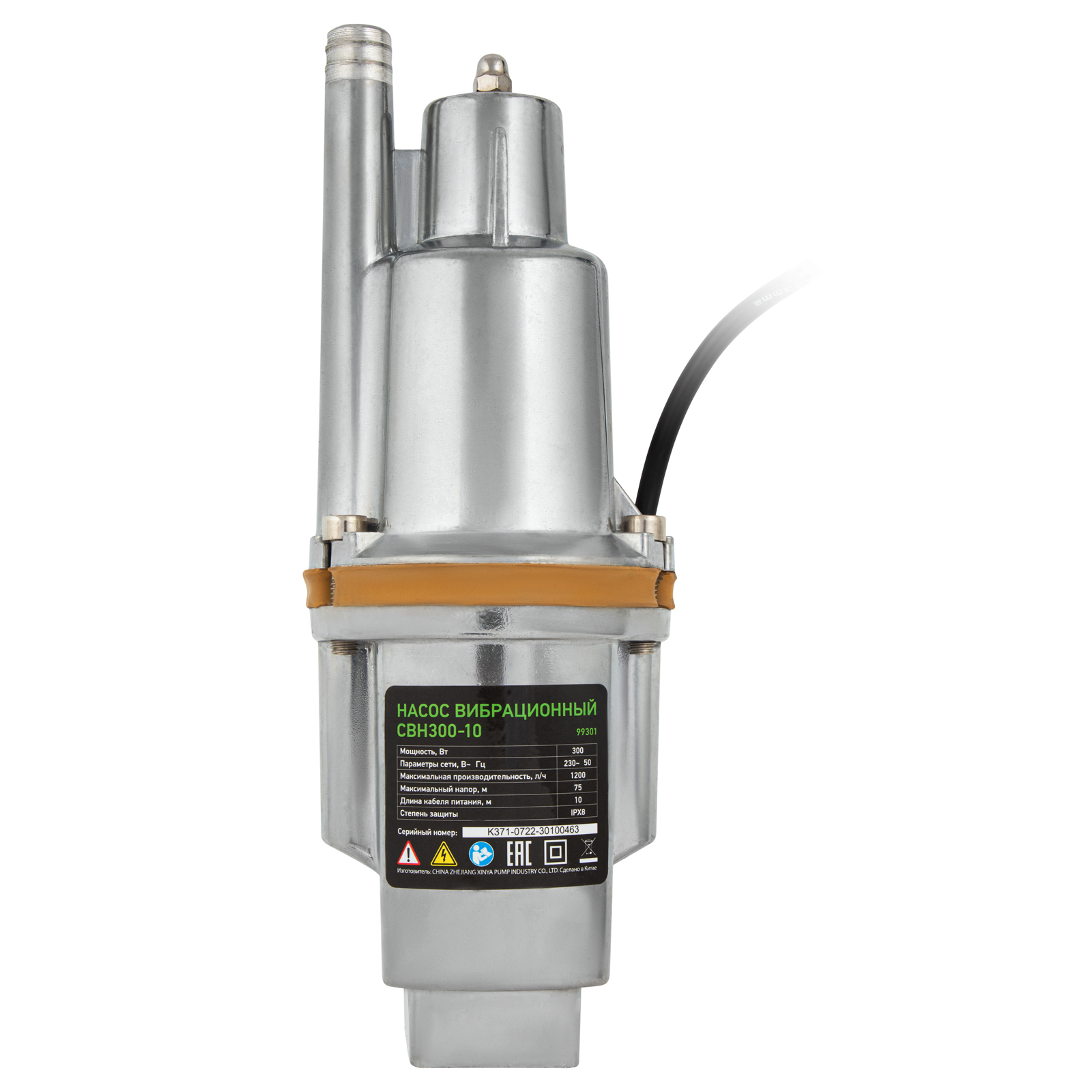 Вибрационный насос СВН300Н-15, нижний забор, 300 Вт, напор 75 м, 1200 л/ч, кабель 15 м Сибртех