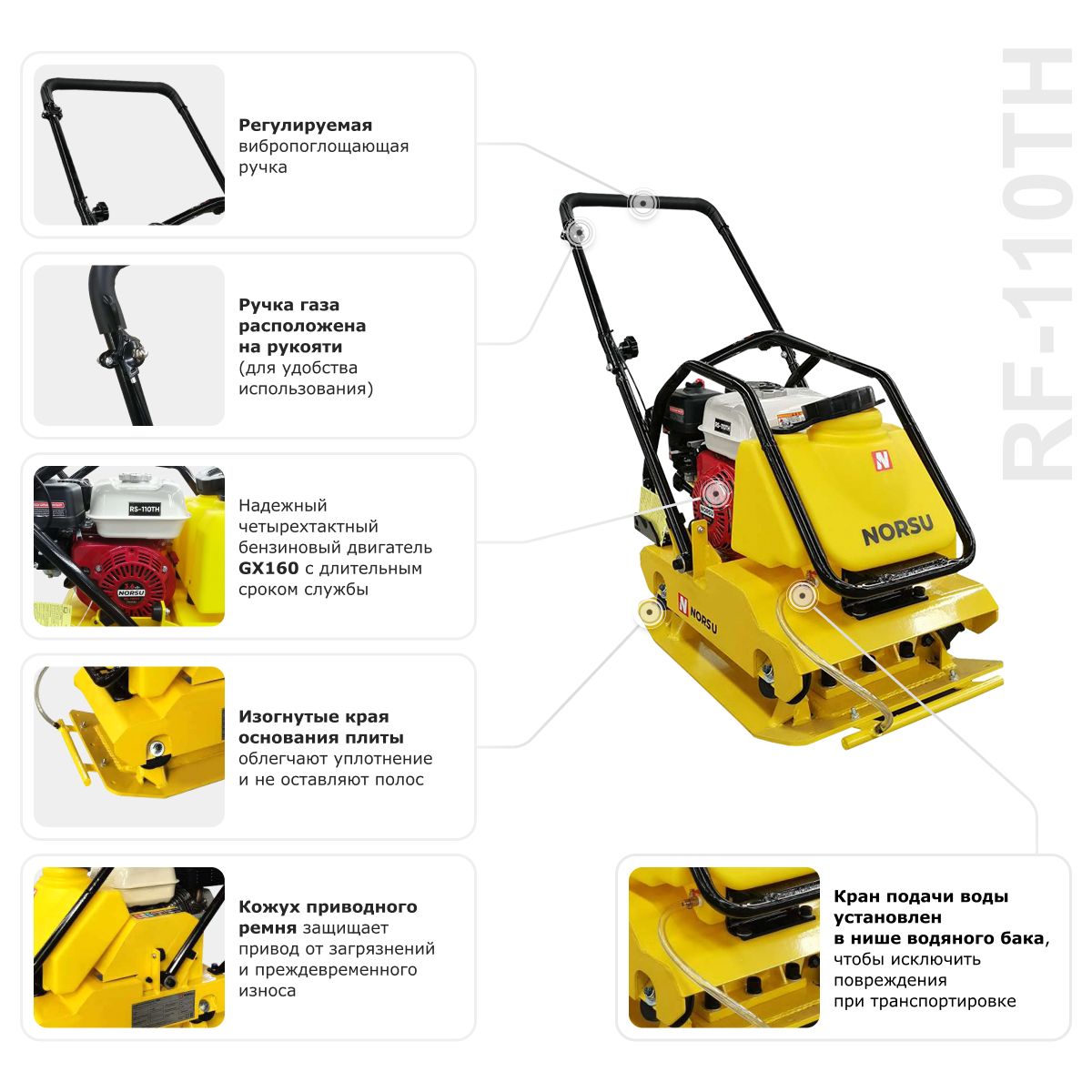 Виброплита бензиновая прямоходная NORSU RF-110TH (колесный комплект, бак для воды)
