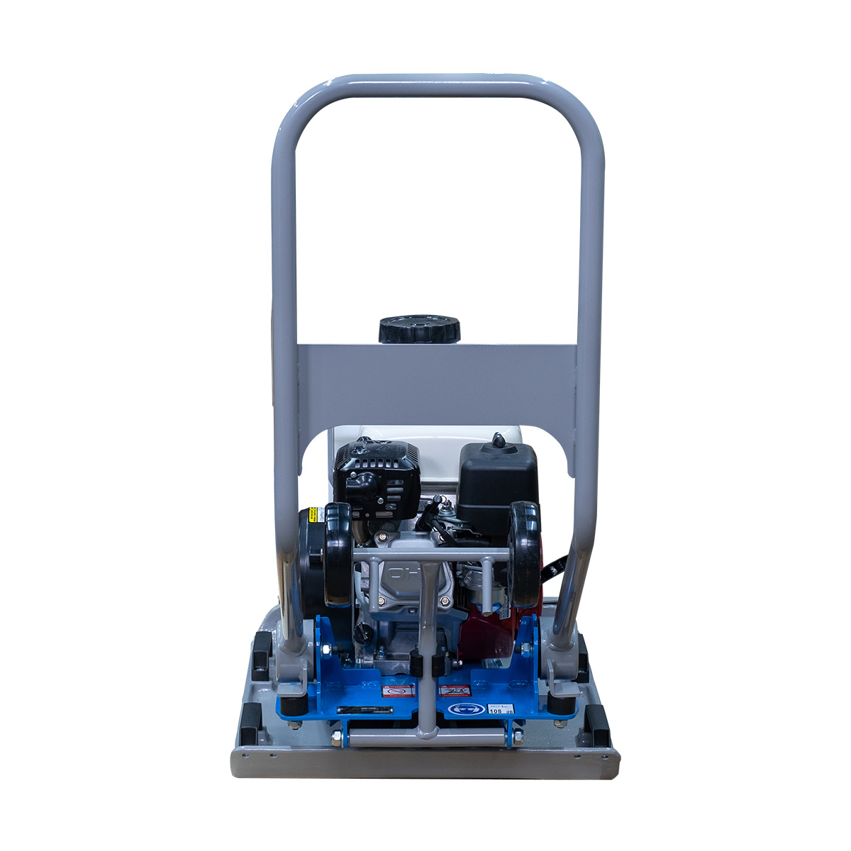 Практичная конструкция: Прочная стальная рама защищает двигатель и вибрационный узел. Наличие встроенного бака для орошения плиты предотвращает налипание глинистых грунтов и асфальта на рабочую поверхность, обеспечивая стабильное качество работы.