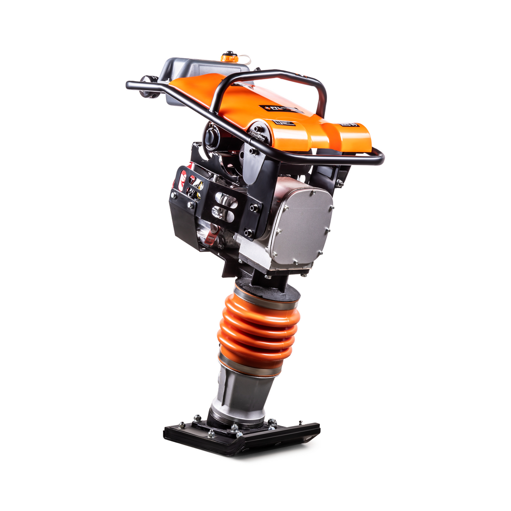 Вкупе с цельносварной опорной плитой вибротрамбовка достигает рабочего веса около 75 кг и позволяет добиваться уплотнения рабочей поверхности до 350 мм.