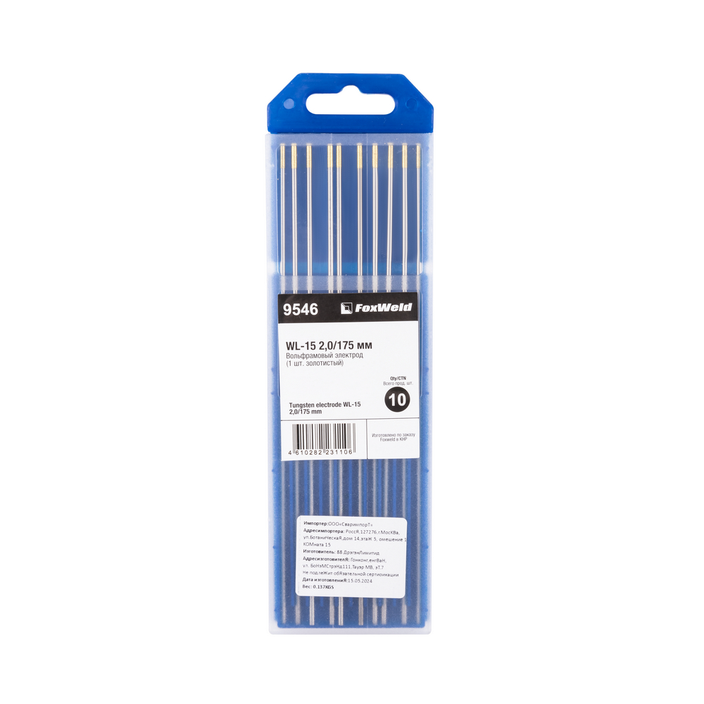 Вольфрамовый электрод WL-15 2,0мм / 175мм (1шт. золотистый) FoxWeld
