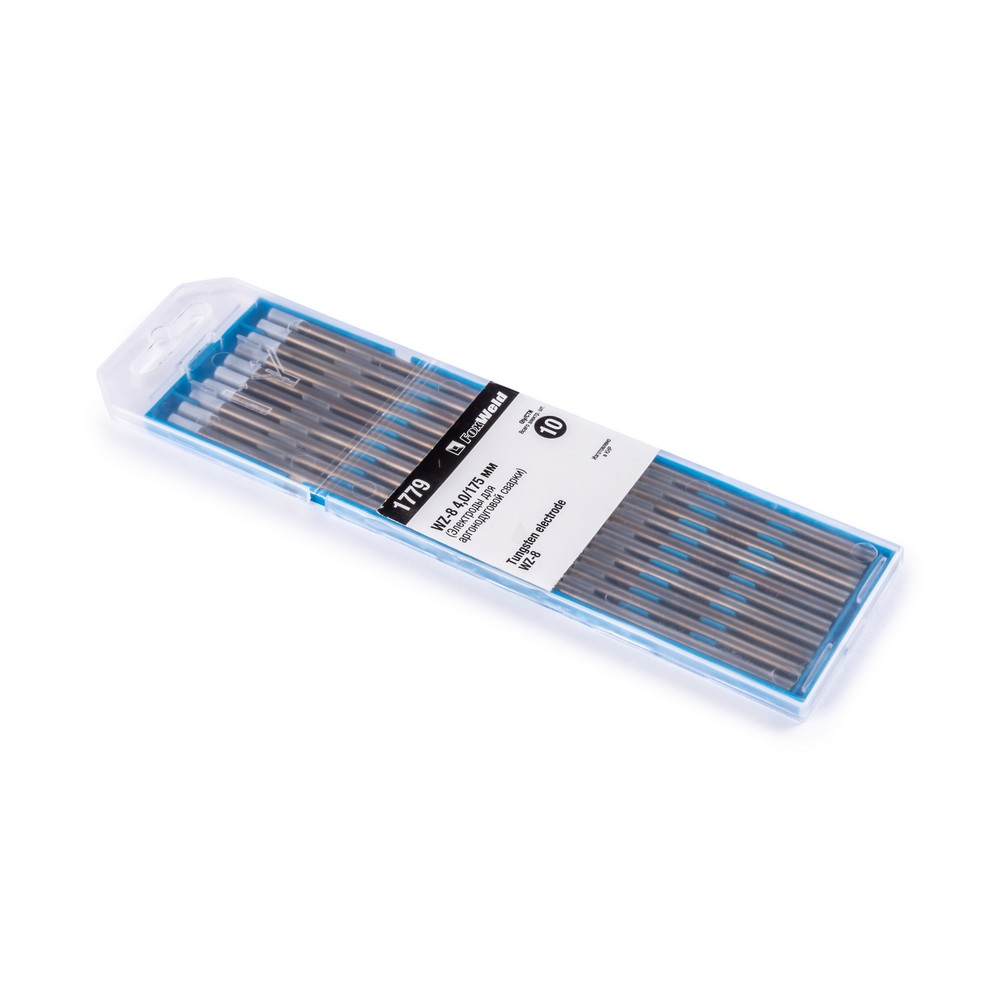 Неплавящийся вольфрамовый электрод марки WZ-8 предназначен для аргонодуговой сварки (TIG) на переменном (AC) токе. Электрод легирован оксидом циркония (ZrO₂). Вольфрамовые электроды WZ-8 используются для сварки алюминия, магния и их сплавов. Часто применяются в военно-промышленном комплексе. Электроды этой марки обеспечивают лёгкое зажигание и стабильное горение дуги, хорошо выдерживают высокую токовую нагрузку. Во время сварочного процесса кончик электрода формируют в форме сферы.ПРОЧНАЯ УПАКОВКАВольфрамовые электроды поставляются в специальных пластиковых пеналах. Прочная и жёсткая упаковка выгодно отличается от картонной, т.к. исключает случайную деформацию электродов при доставке и в условиях хранения на складе.ПРЕИМУЩЕСТВА:Сварка алюминия, магния и их сплавовСтабильная дугаВыдерживает большую токовую нагрузкуРабочий наконечник электрода формируется в форме сферыФУНКЦИОНАЛЬНЫЕ ОСОБЕННОСТИ:ПОДБОР ВОЛЬФРАМОВОГО ЭЛЕКТРОДА: Вольфрамовые электроды разделяются по цвету наконечников в зависимости от сферы применения, что необходимо учитывать при выборе.ЗНАЧЕНИЯ ТОКА ДЛЯ ЭЛЕКТРОДОВ РАЗЛИЧНОГО ДИАМЕТРА: * в таблице приведены примерные допустимые значения